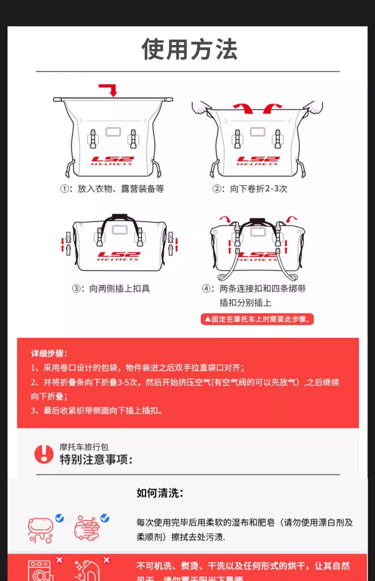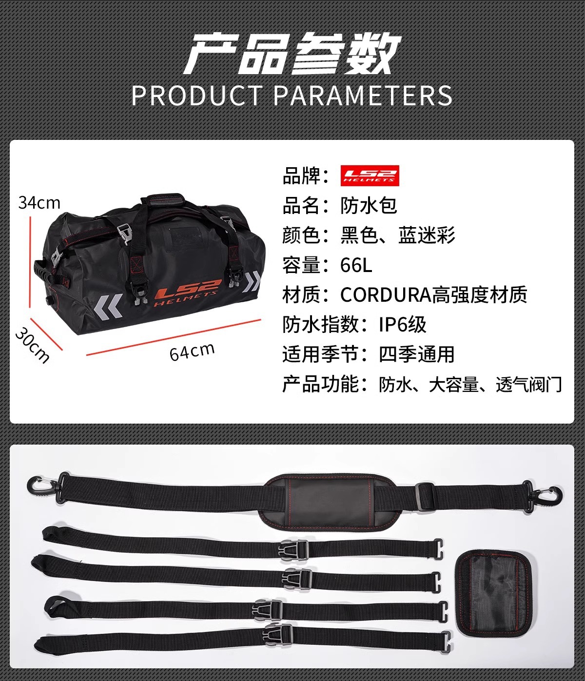 LS2 bolsa de asiento trasero de motocicleta bolsa de cola impermeable montar camello bolsa de cola de motocicleta equipo de viaje montar bolsa colgante de gran capacidad