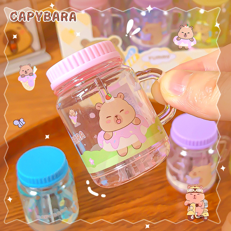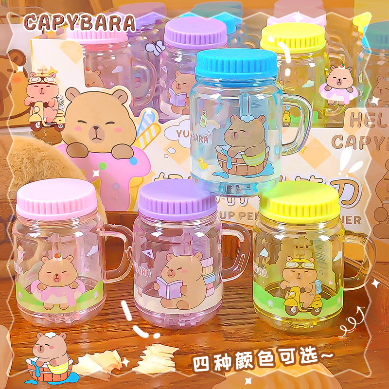 Kapibala taza de té con leche sacapuntas dibujos animados lindo portátil mini sacapuntas estudiante manual de un solo orificio