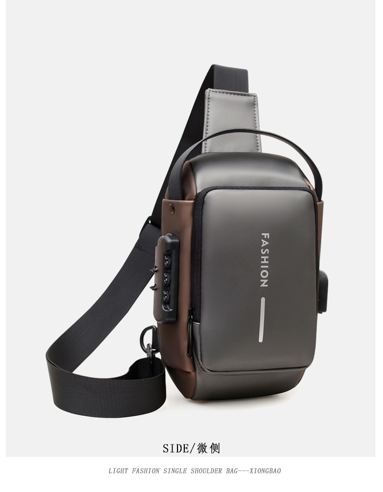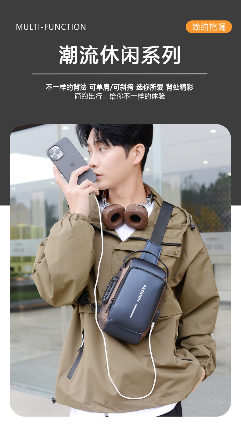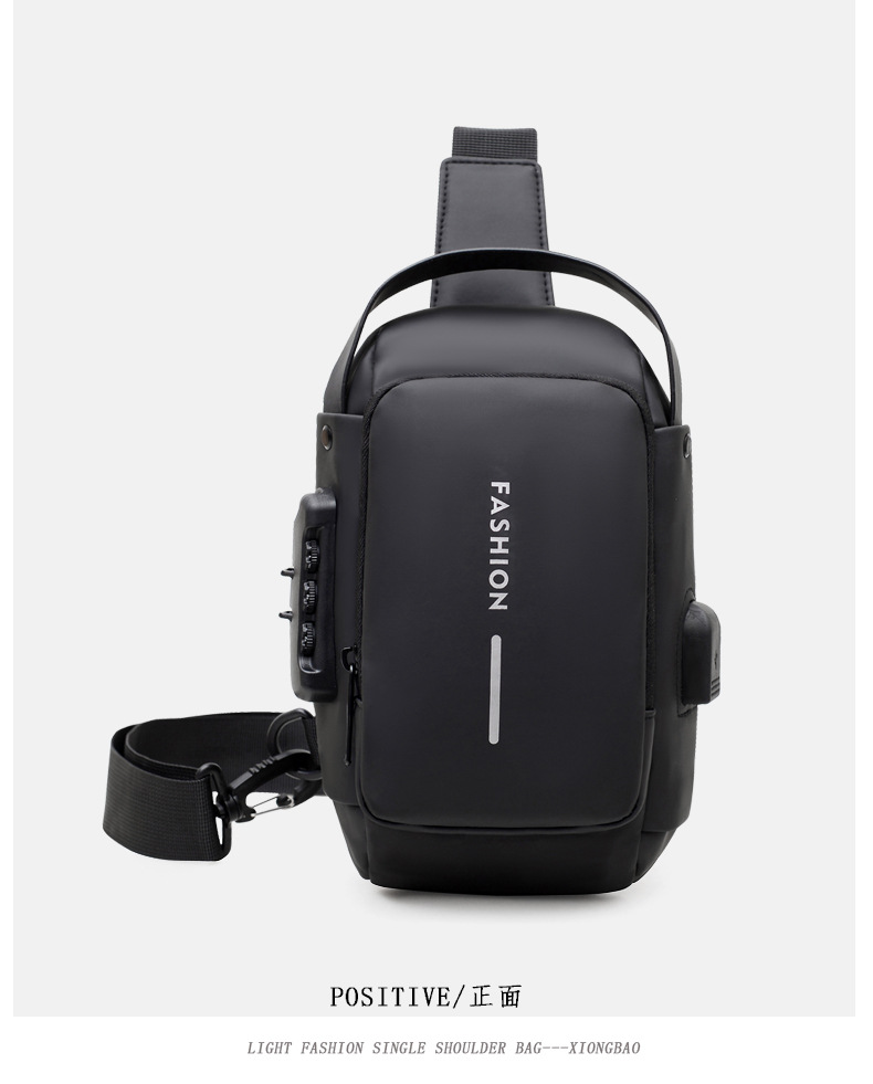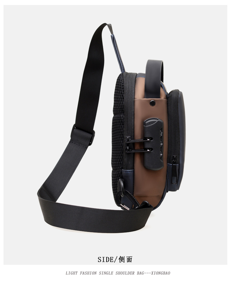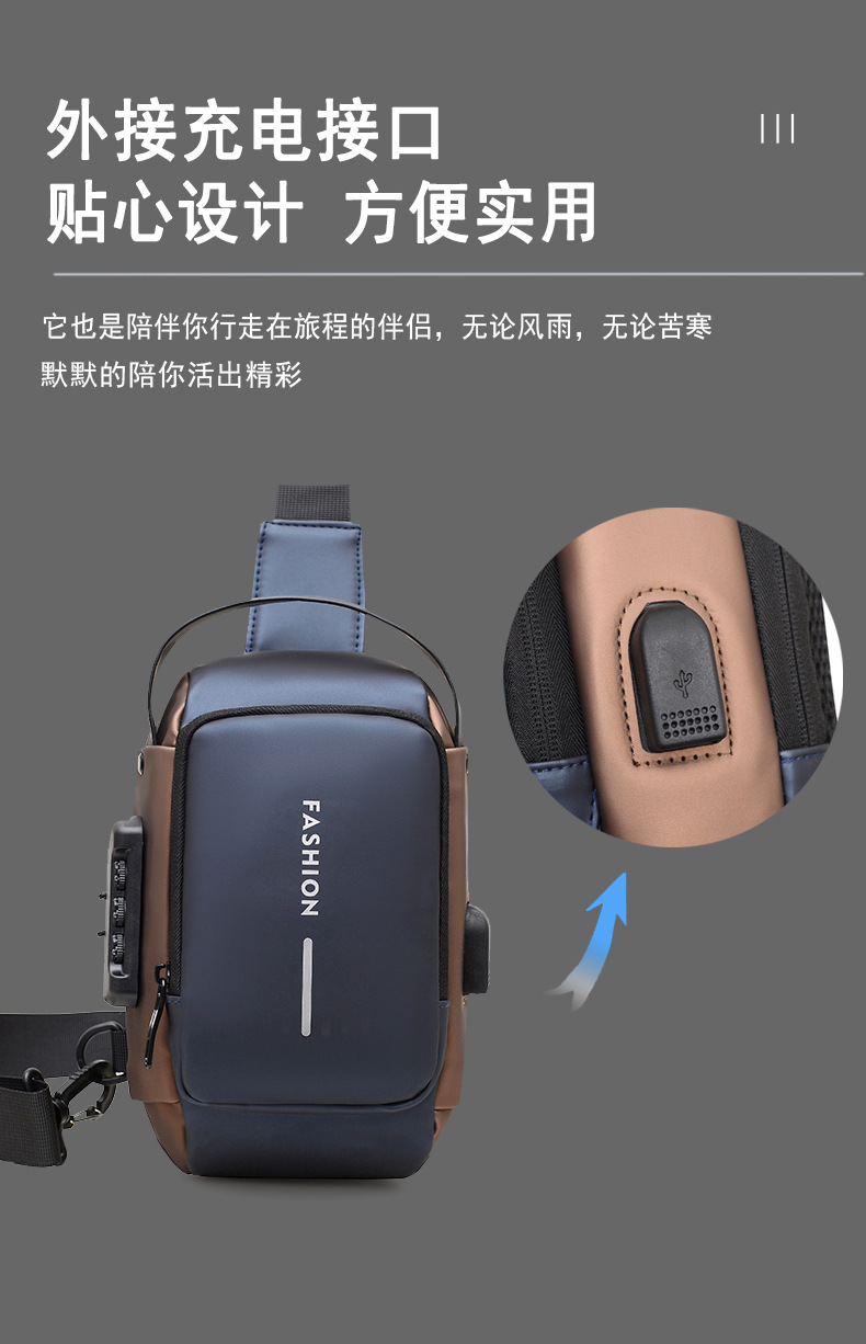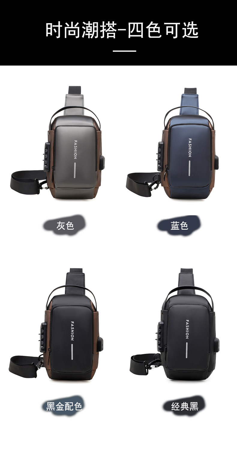 Carga USB explosión de estilo de moda de tramo oblicuo mochila deportiva anti-robo mochila pequeña multifuncional contraseña bloqueo bolso de pecho