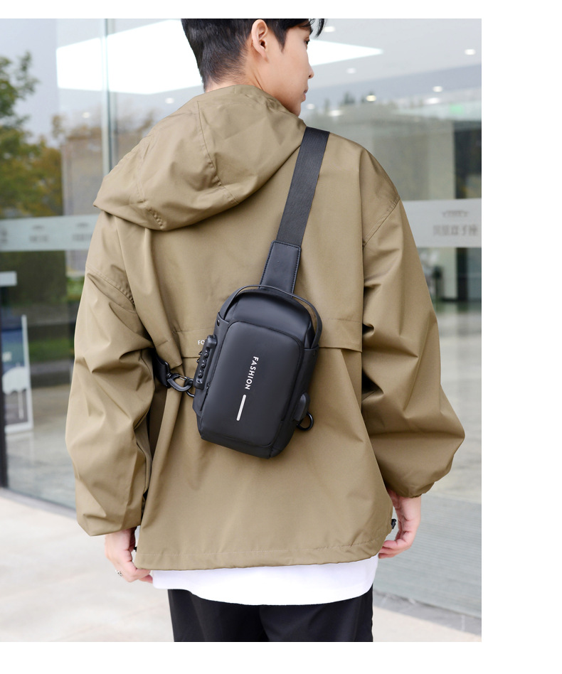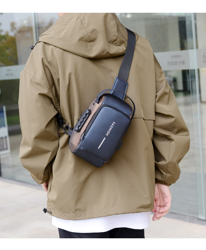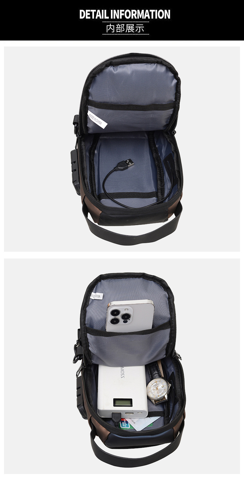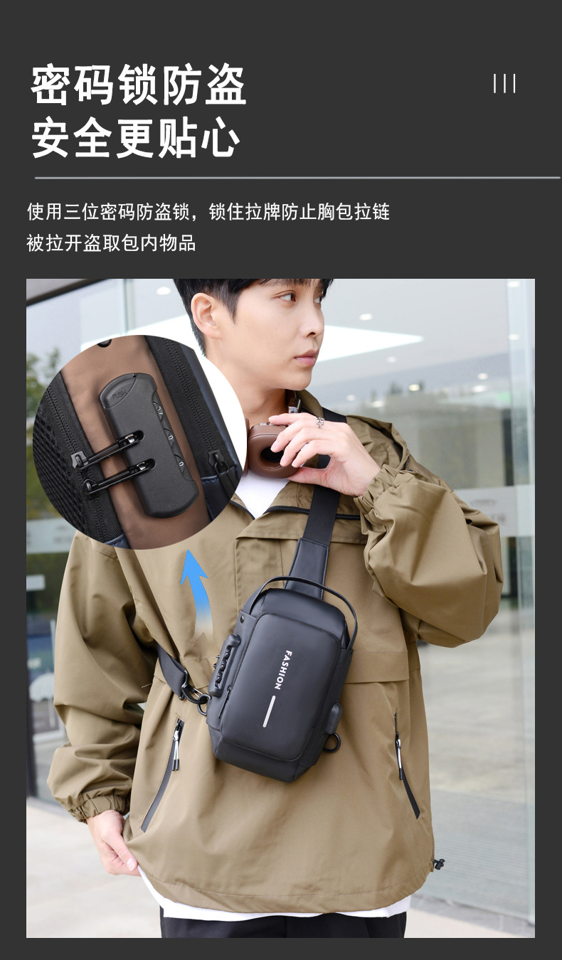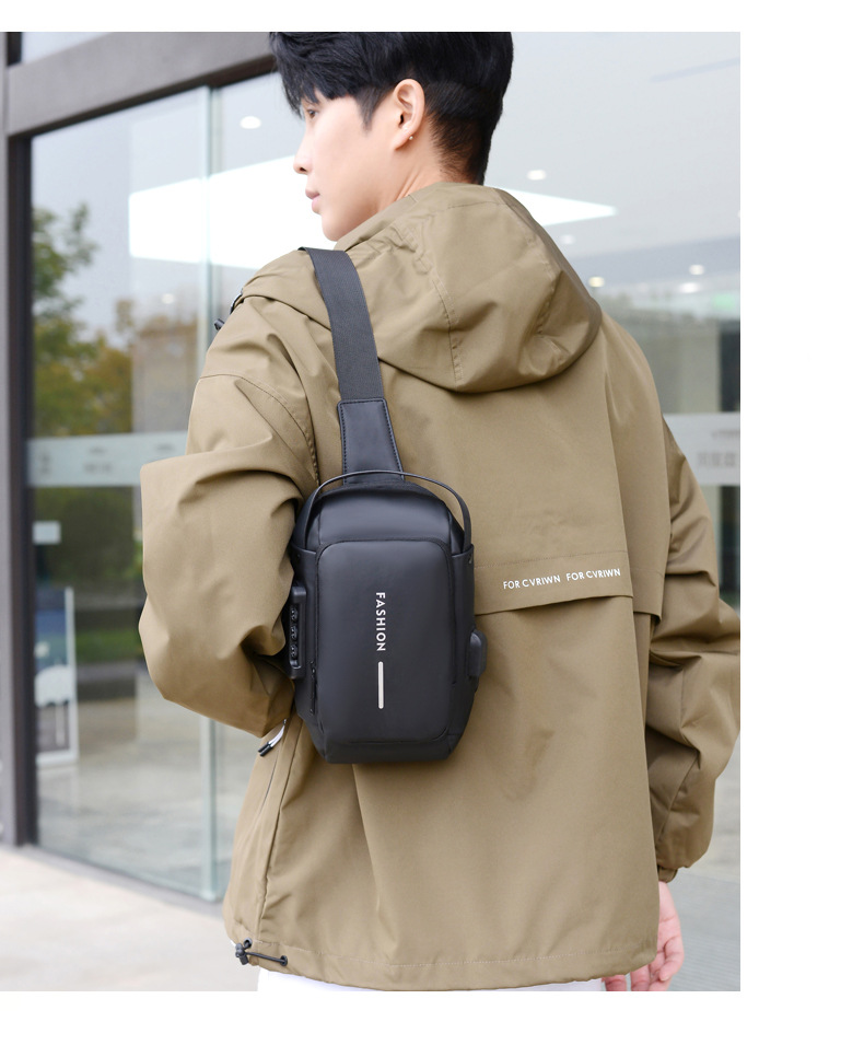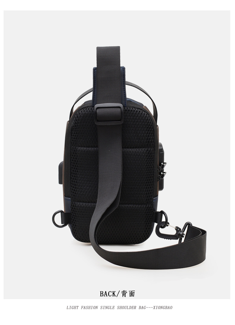 Carga USB explosión de estilo de moda de tramo oblicuo mochila deportiva anti-robo mochila pequeña multifuncional contraseña bloqueo bolso de pecho