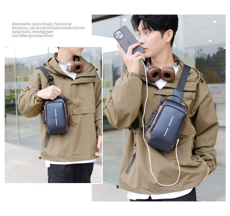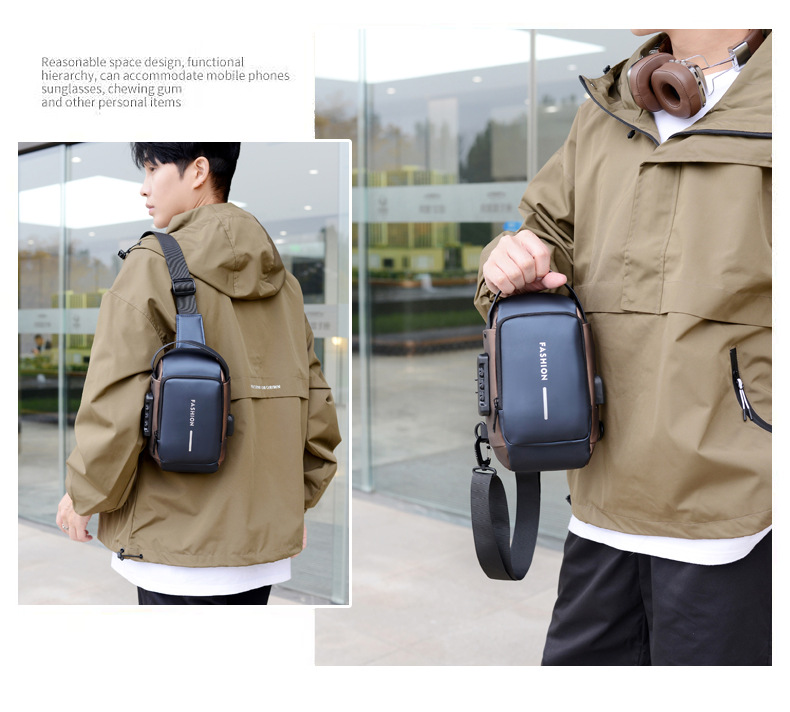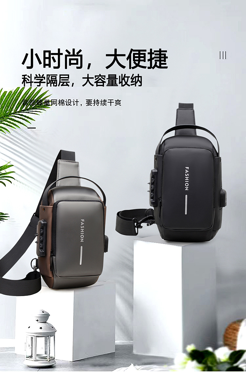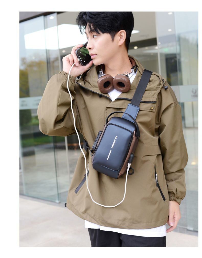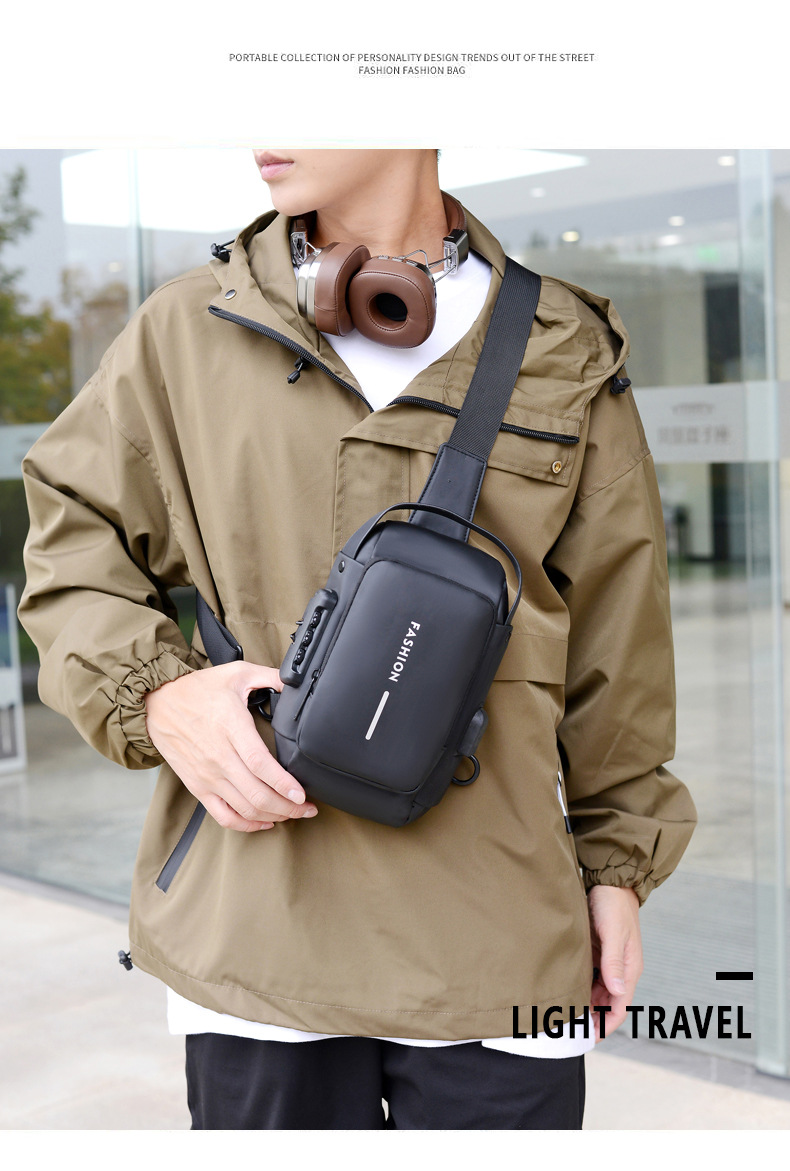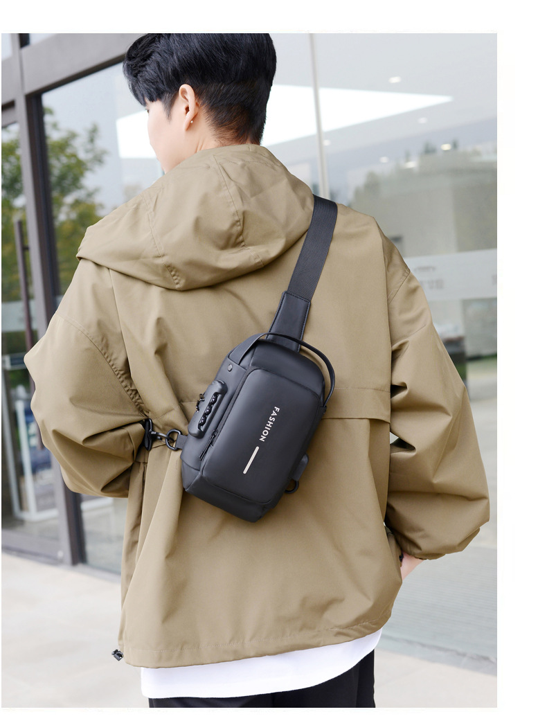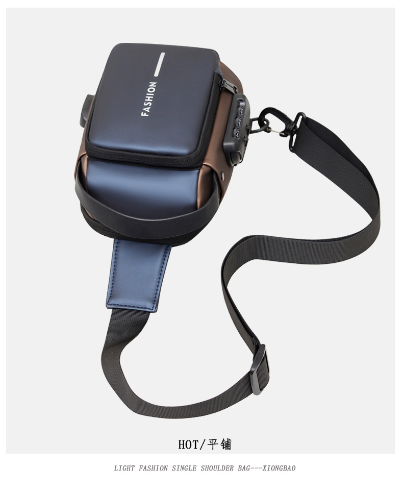 Carga USB explosión de estilo de moda de tramo oblicuo mochila deportiva anti-robo mochila pequeña multifuncional contraseña bloqueo bolso de pecho