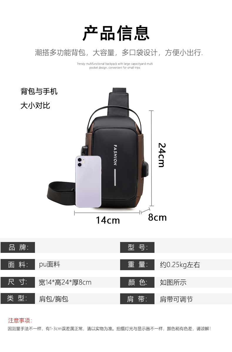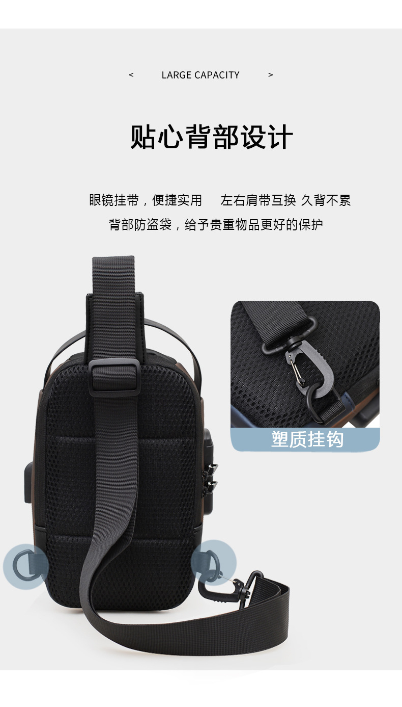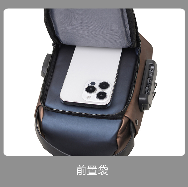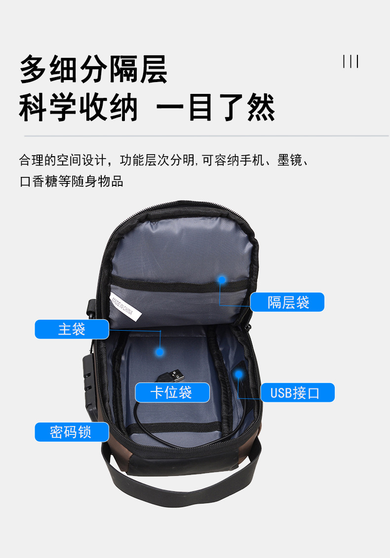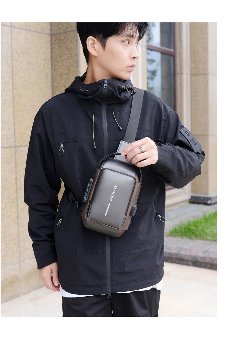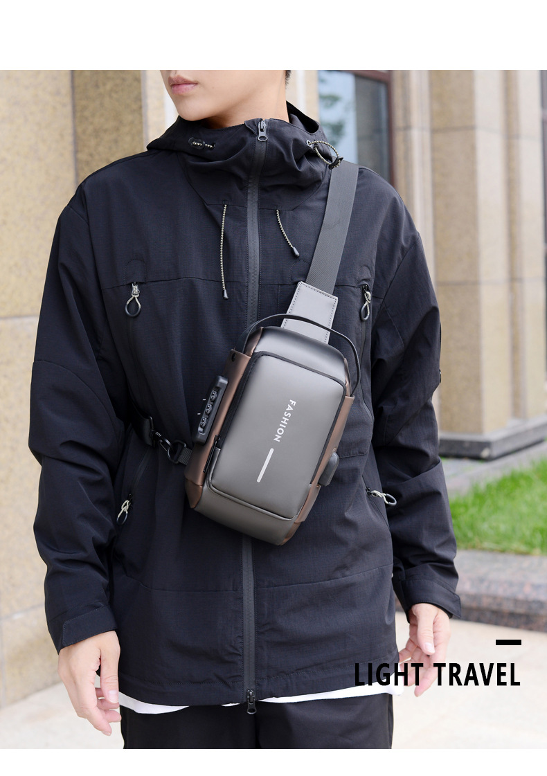 Carga USB explosión de estilo de moda de tramo oblicuo mochila deportiva anti-robo mochila pequeña multifuncional contraseña bloqueo bolso de pecho