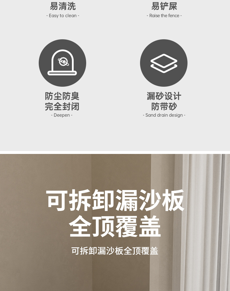 | Colores | Gris clásico (cajón grande de 35 kg) para evitar salpicaduras externas,Azul claro y verde (cajón grande de 35 kg) para evitar salpicaduras externas,Jazmín amarillo (cajón grande de 35 kg) para evitar salpicaduras externas,Rosa en polvo (35 kg de cajón grande) para evitar salpicaduras externas |