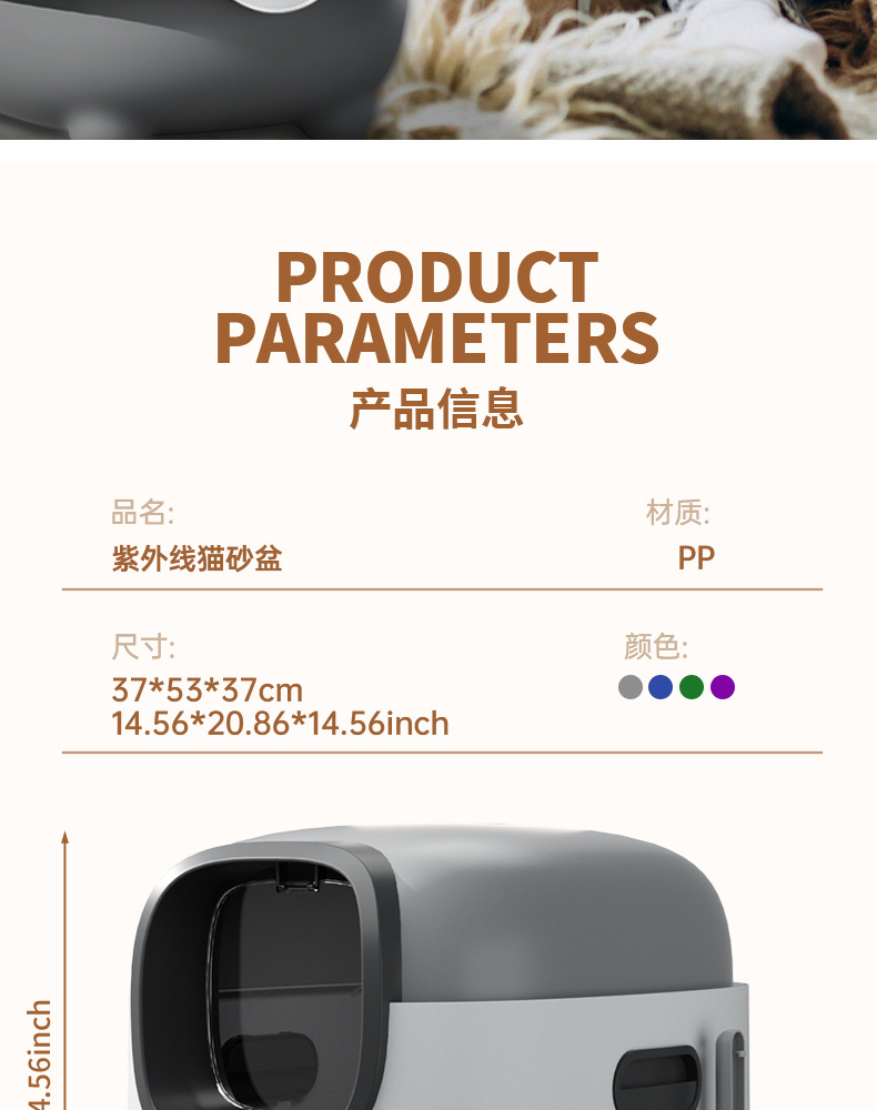 | Colores | Estilo clásico gris [pala de arena para gatos de gran tamaño gratis],Estilo clásico azul [pala de arena para gatos de gran tamaño gratis],Púrpura-Clásico [Pala de arena para gatos de gran tamaño gratis],Estilo clásico verde [pala de arena para gatos de gran tamaño gratis],Modelo mejorado gris [lámpara germicida ultravioleta],Modelo mejorado azul [lámpara germicida ultravioleta],Modelo mejorado púrpura [lámpara germicida ultravioleta],Actualización verde [lámpara germicida ultravioleta] |