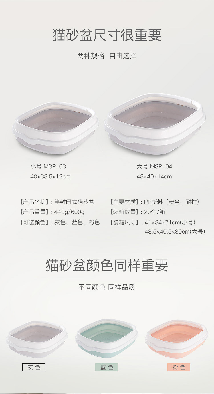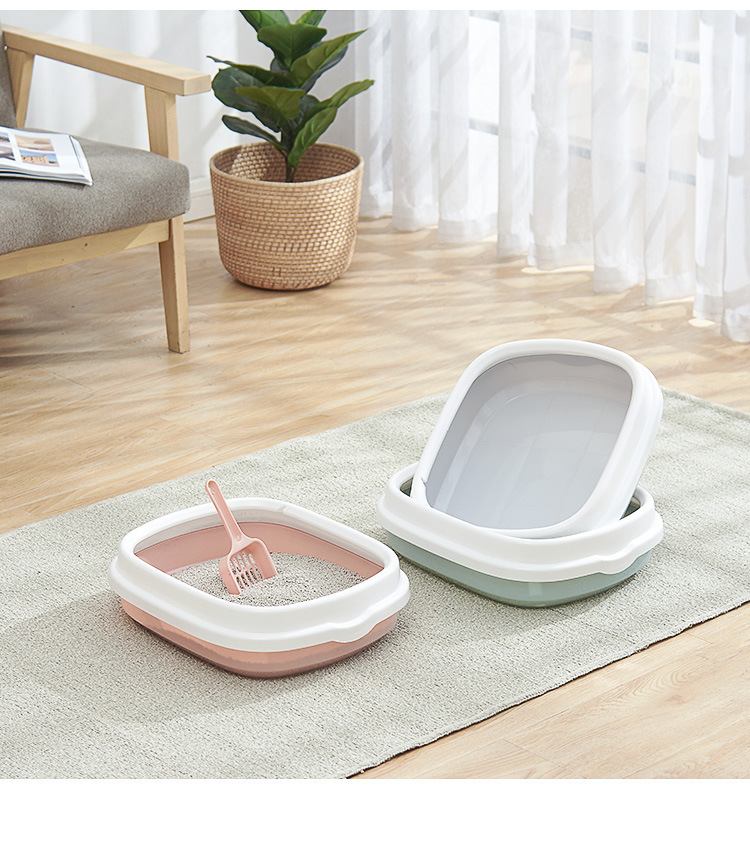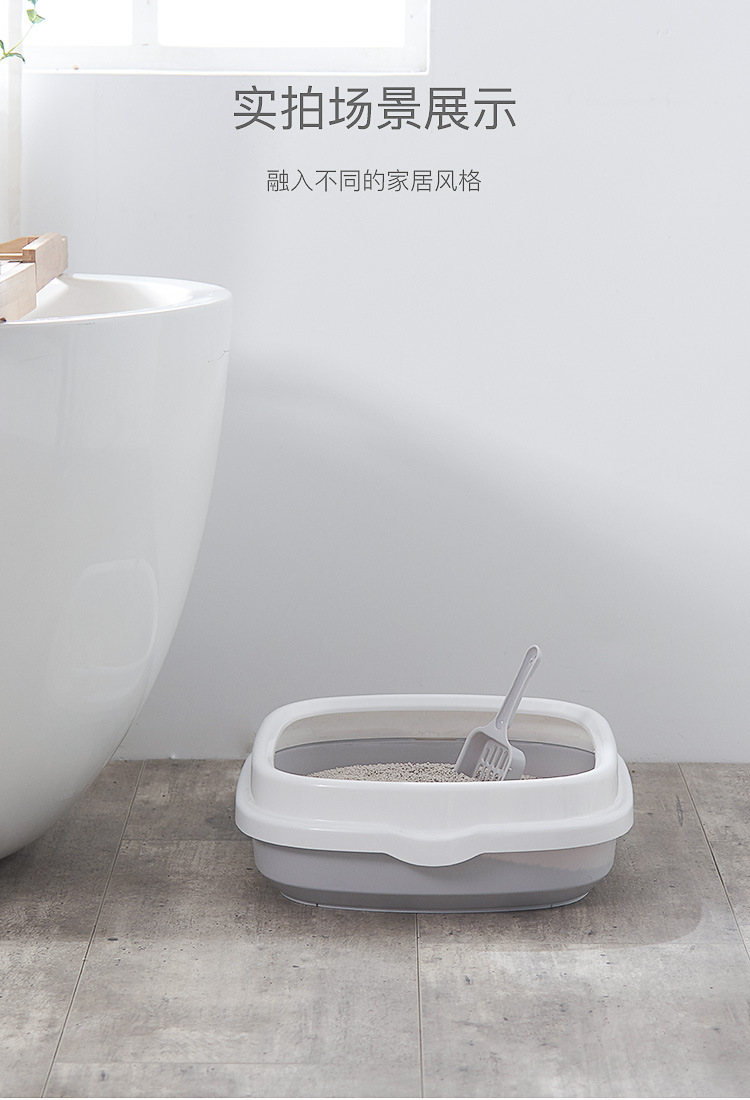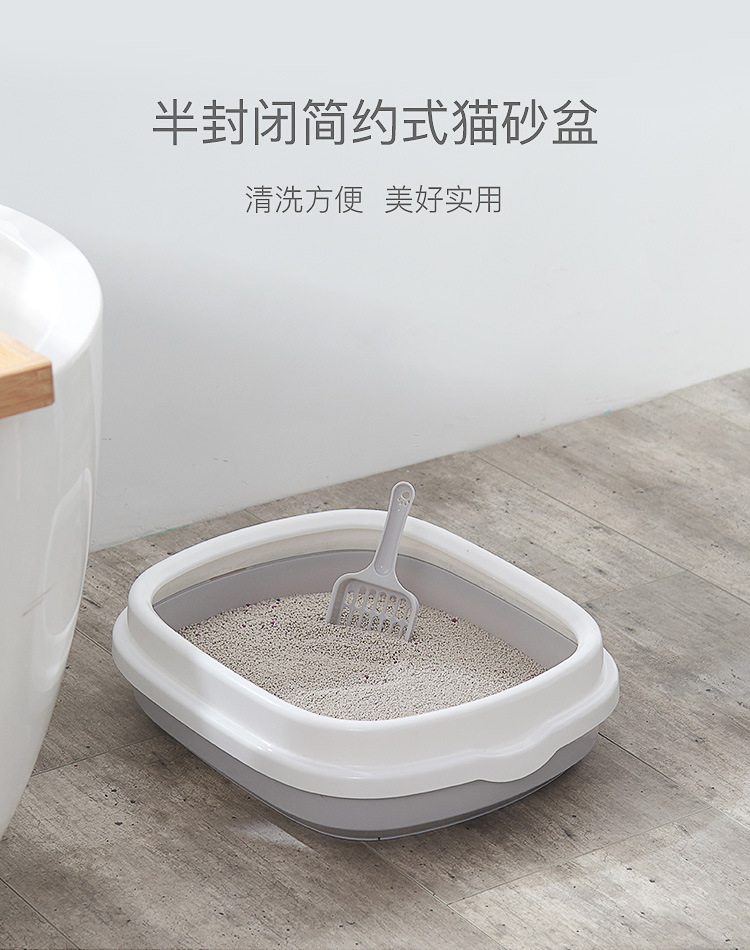 La caja de arena para gatos de gran tamaño es semicerrada, a prueba de salpicaduras externas, caja de arena para gatos de borde alto, baño para gatos, fábrica de suministros para mascotas al por mayor