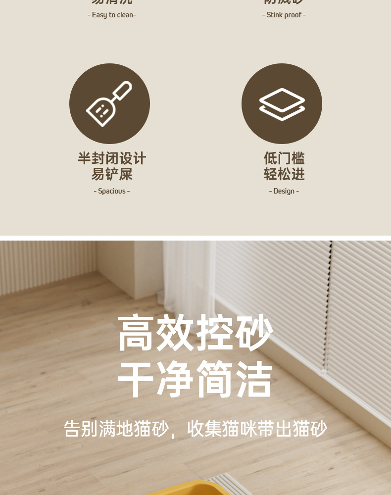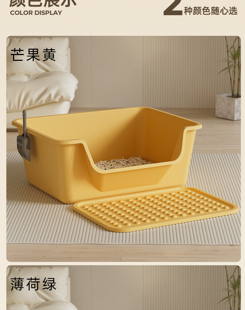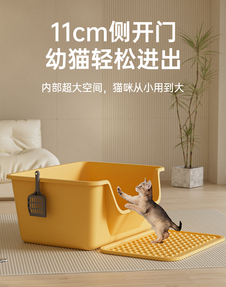 Suministros para mascotas, inodoro para gatos de gran tamaño abierto a prueba de salpicaduras, caja de arena para gatos extra grande, caja de arena para gatos semicerrada