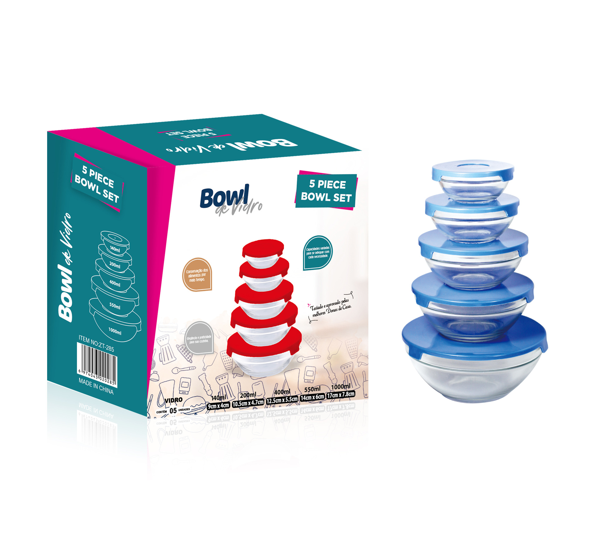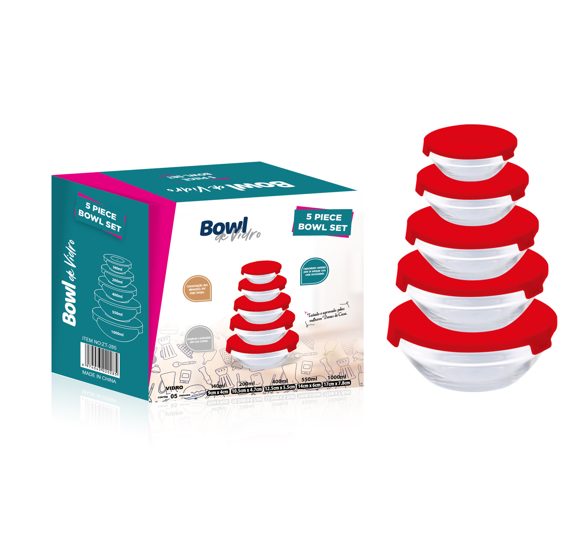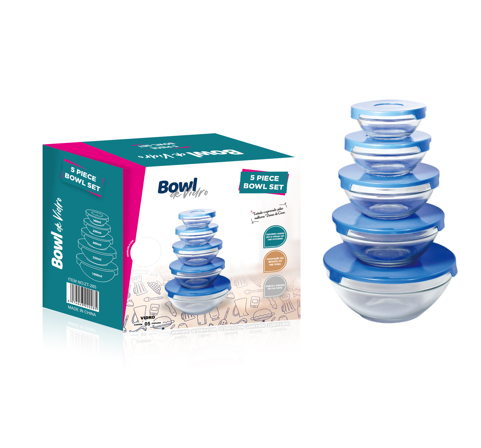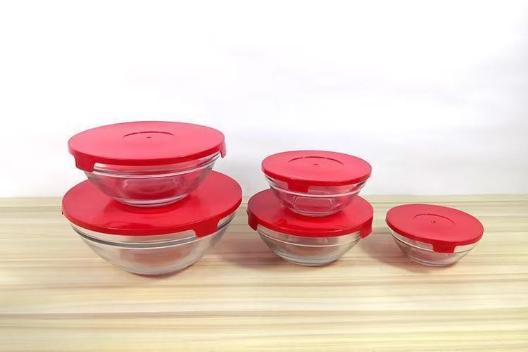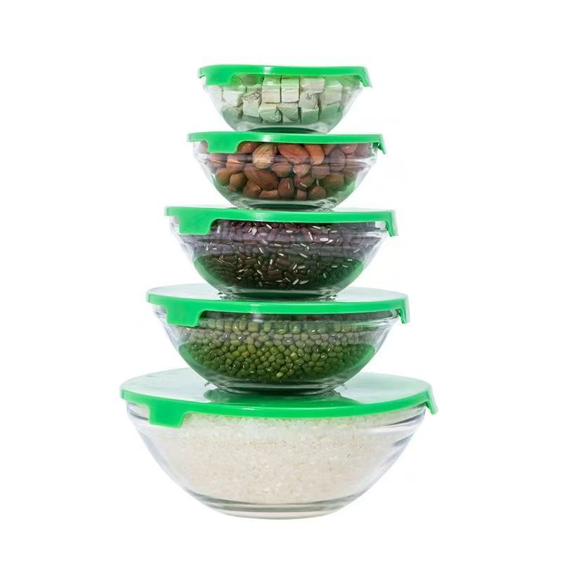 Juego de 5 Boles Herméticos de Vidrio Resistente al Calor con Tapa, para Almacenar y Cocinar