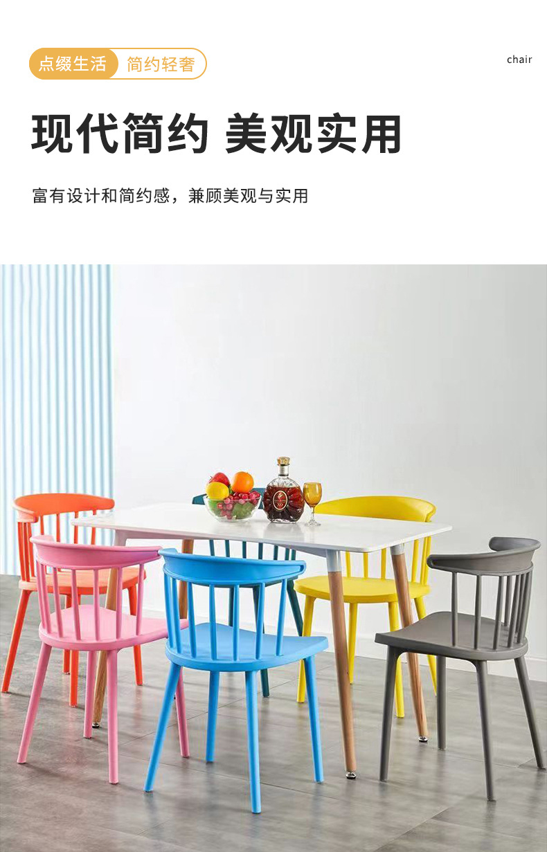 Taburetes para el hogar con respaldo de plástico grueso silla apilada mesa de comedor comedor simple y comercial