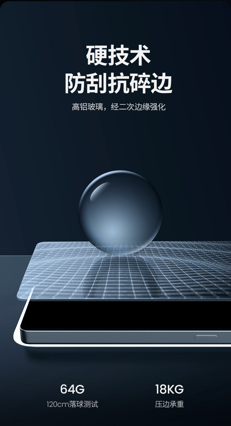 本产品为玻璃制品,虽经过钢化处理(抗冲击强度高),但在极端情况下仍有破碎风险,请在使用时注意保护。
