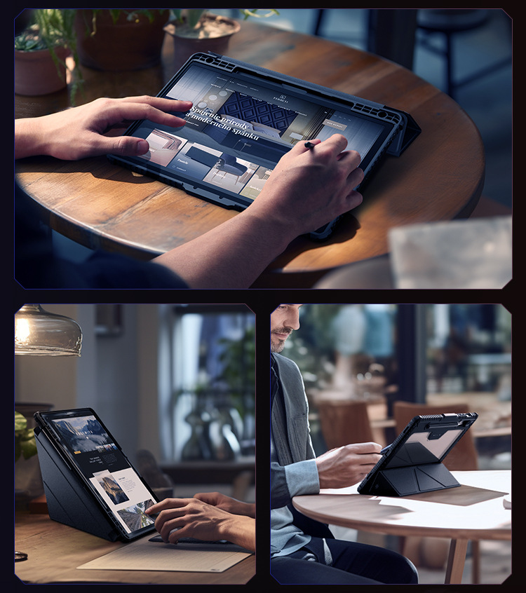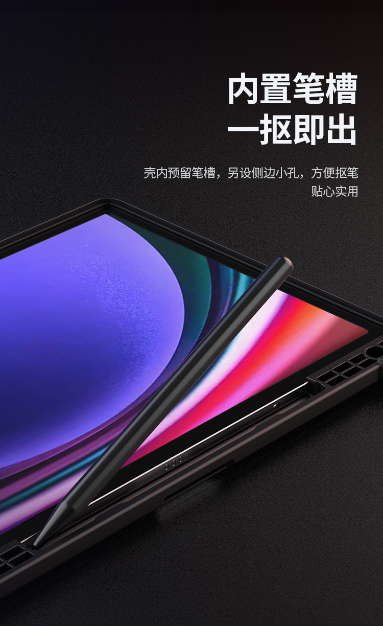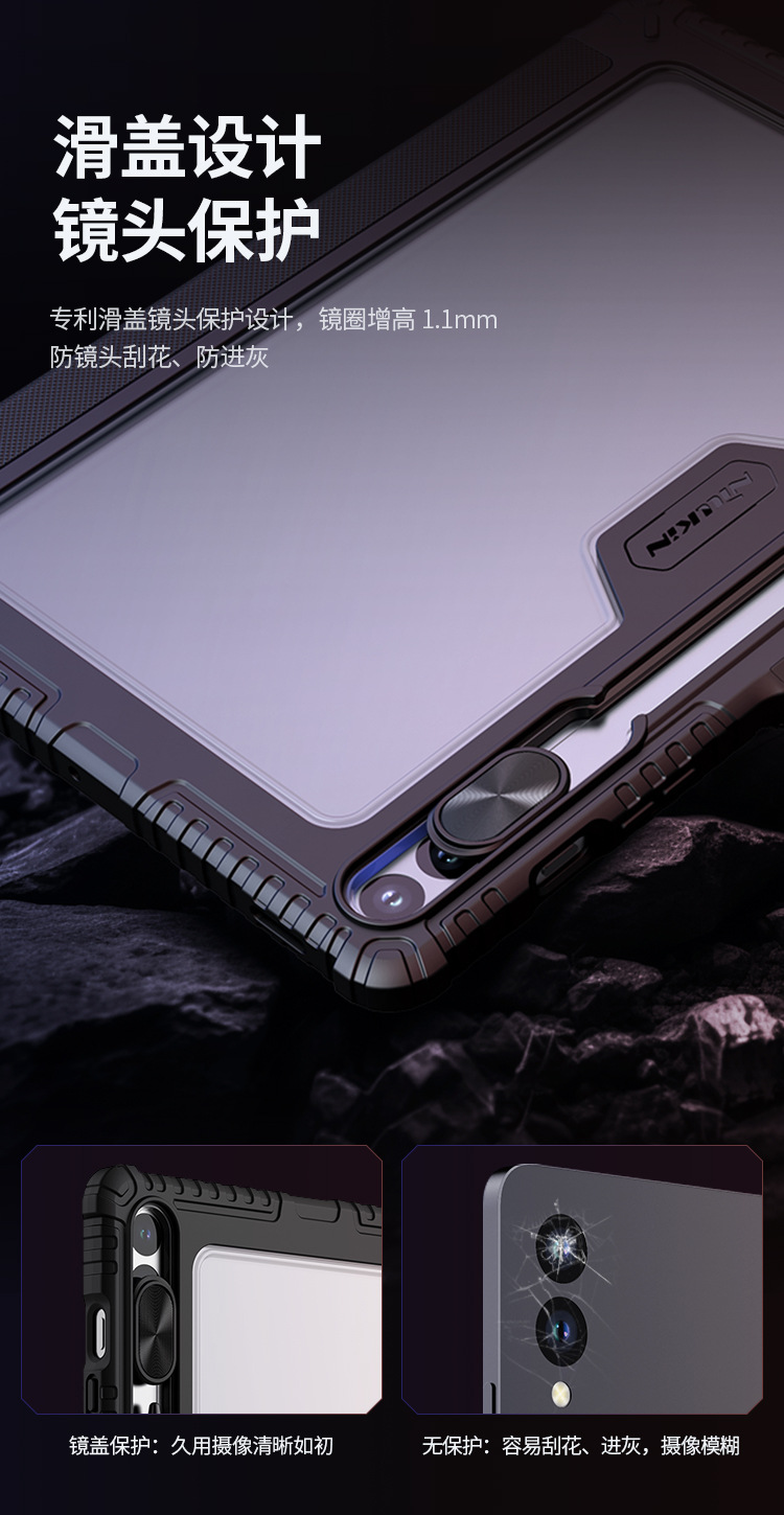 悍甲Pro系列-多角度折叠款,精选TPU+PC材质,套碑工艺一体注塑成型,软硬双重保护;增加镜头滑盖设计,保护摄像头,防刮花护隐私;面盖采用凸点晒纹PU皮革,多角度弯折设计,观屏更灵活舒适;搭扣内置磁吸,具备休眠/唤醒功能;四角气囊抗摔,四周增凸背框,无惧掉落撞击;霸气酷炫的几何造型,给人疾风劲旅的强悍气魄,凹凸有致的硬朗身形,酷似iPad的骠骑卫士,极富动感魅力,酷黑有型。传承并升华着活力、不羁、勇猛的悍之精髓。