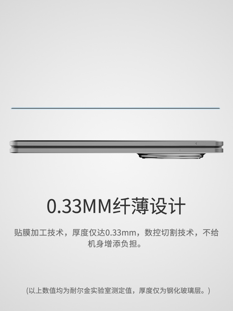 选用日本进口AGC玻璃材质,防御性能高,高透光率、高度还原屏幕原色彩。采用抗眩光涂层处理,有效防止炫光衍生。特殊钢化玻璃,硬度高达9H,耐刮花、防破碎,表面使用疏油涂层,更有效地抗油污,且可以有效阻挡、过滤紫外线。融合先进贴膜加工技术,厚度仅达0.33mm,采用数控切割技术,2.5D磨边工艺,还原屏幕触摸手感。