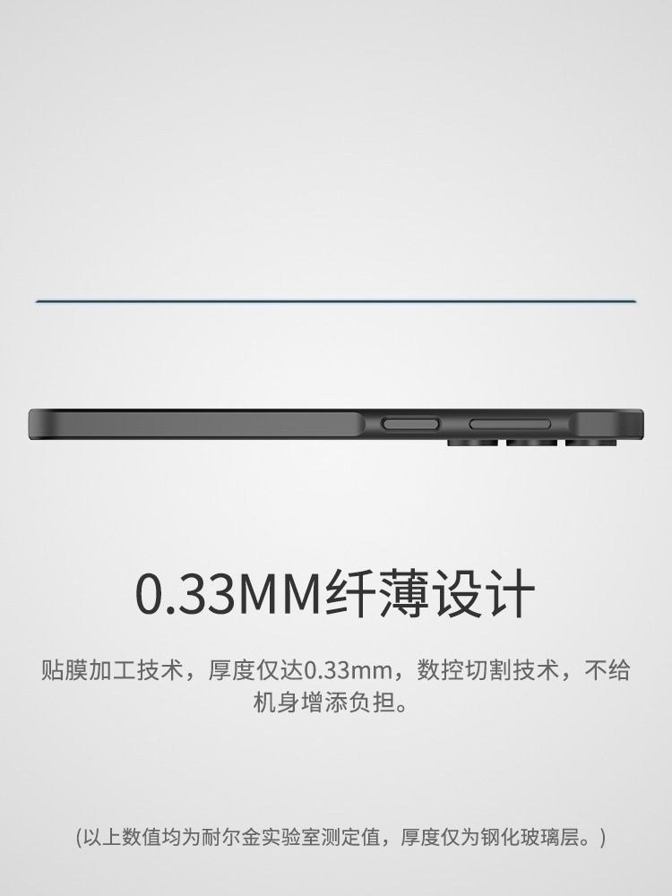 选用日本进口AGC玻璃材质,防御性能高,高透光率、高度还原屏幕原色彩。采用抗眩光涂层处理,有效防止炫光衍生。特殊钢化玻璃,硬度高达9H,耐刮花、防破碎,表面使用疏油涂层,更有效地抗油污,且可以有效阻挡、过滤紫外线。融合先进贴膜加工技术,厚度仅达0.33mm,采用数控切割技术,2.5D磨边工艺,还原屏幕触摸手感。
