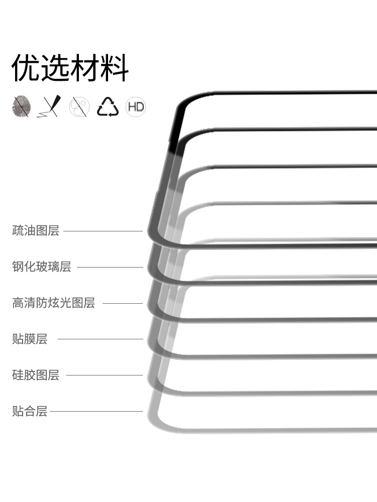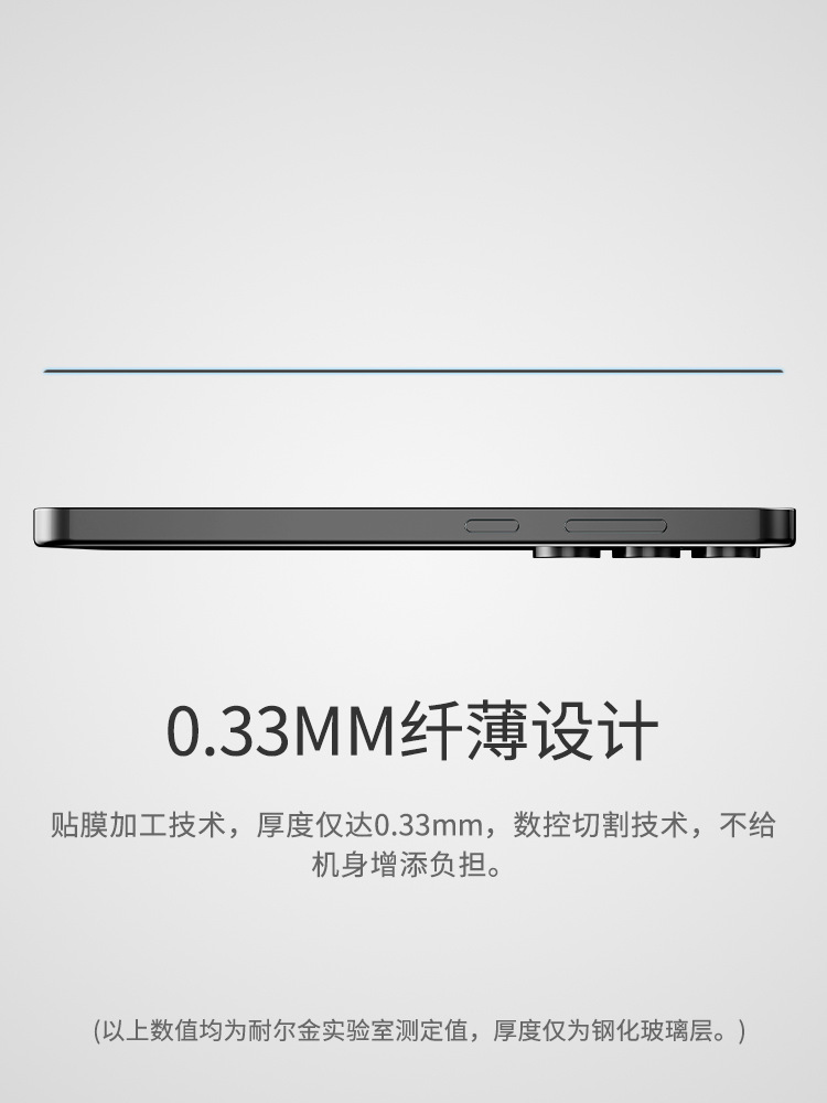 选用日本进口AGC玻璃材质,防御性能高,高透光率、高度还原屏幕原色彩。采用抗眩光涂层处理,有效防止炫光衍生。特殊钢化玻璃,硬度高达9H,耐刮花、防破碎,表面使用疏油涂层,更有效地抗油污,且可以有效阻挡、过滤紫外线。融合先进贴膜加工技术,厚度仅达0.33mm,采用数控切割技术,2.5D磨边工艺,还原屏幕触摸手感。