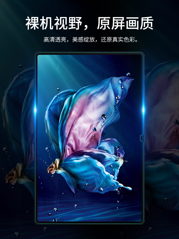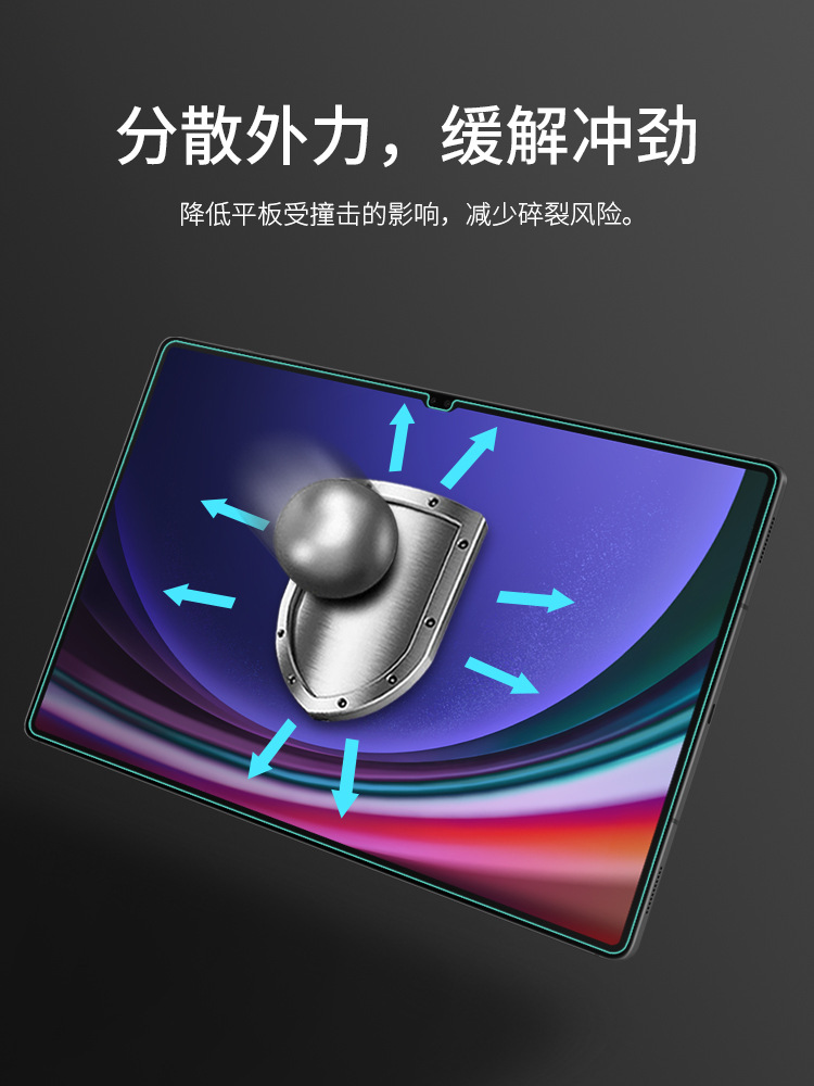 选用日本进口AGC钢化玻璃材质,四小时高温钢化,硬度高达9H,防御性能强,破碎时成蛛网状,高效耐刮、防摔、防破碎,能抵抗日常刀具的刮伤和一定程度外力的冲击,融合先进贴膜加工技术,采用数控切割技术并结合2.5D磨边工艺 ,使贴膜与平板浑然一体,边沿圆润不伤手。贴膜表面采用纳米疏油涂层处理,抗指纹防油污效果优异,同时抗炫光衍生、阻挡、过滤紫外线。厚度仅达0.33mm,高透光率、高度还原屏幕原色彩,更薄、更清,更出彩。产品环保无污染,硅胶涂层,吸附迅速,一贴即合,不留气泡。