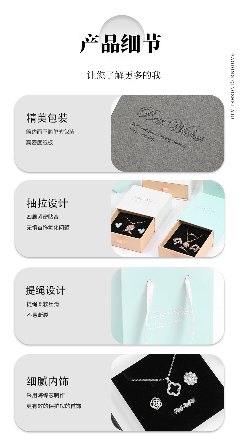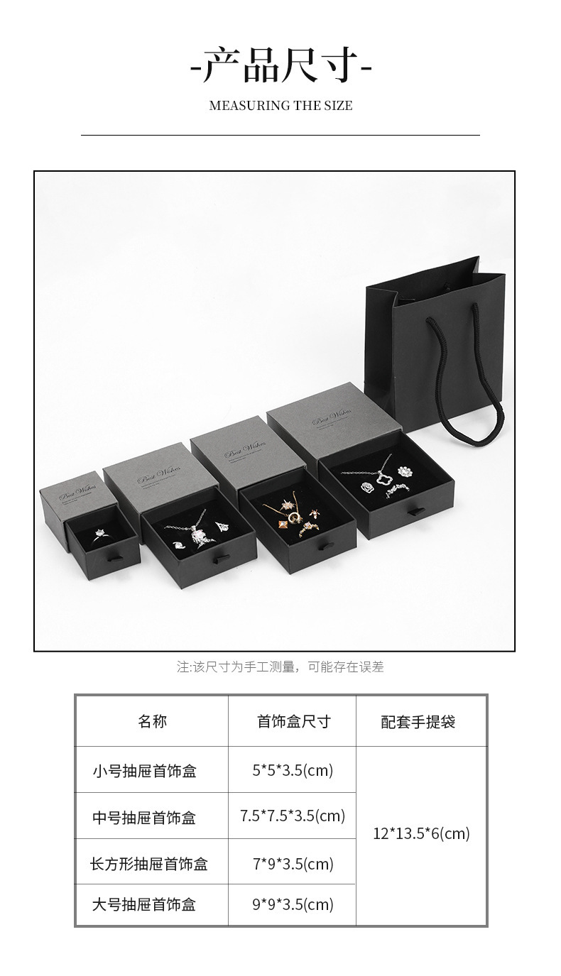 | Especificaciones | Para combinar,Caja de cajones 7.5*7.5*3.5cm,Caja de cajones 9*9*3,5 cm,Caja de cajones 5*5*3.5cm,Caja de cajones 7*9*3.5cm,Bolso a juego: 12*13.5*6 cm |