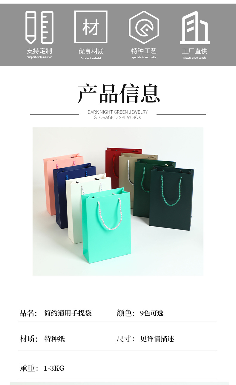 | Modelo de especificación | Blanco; 15*6*22cm; cartón blanco,Blanco; 11*6*15cm; cartón blanco,Azul real; 15*6*22cm; cartón blanco,Azul real; 11*6*15cm; cartón blanco,Azul marino; 15*6*22cm; cartón blanco,Azul marino; 11*6*15cm; cartón blanco,Rosa;15*6*22cm;cartón blanco,Rosa;11*6*15cm;cartón blanco,Verde;15*6*22cm;cartón blanco,Verde;11*6*15cm;cartón blanco,Azul claro; 15*6*22cm; cartón blanco,Azul claro; 11*6*15cm; cartón blanco,Champán dorado; 15*6*22 cm; cartón blanco,Champán dorado; 11*6*15cm; cartón blanco,Color granate; 15*6*22cm; cartón blanco,Color granate; 11*6*15cm; cartón blanco,Patrón esmerilado de tarjeta dorada; 15*11*6cm; cartón blanco,Patrón esmerilado de tarjeta dorada; 22*15*6cm; cartón blanco,Cuadros rojos; 15*11*6cm; cartón blanco,Cuadros rojos; 22*15*6cm; cartón blanco,Patrón cepillado dorado; 15*11*6cm; cartón blanco,Patrón cepillado dorado; 22*15*6cm; cartón blanco,Patrón de malla UV marrón; 15*11*6cm; cartón blanco,Patrón de malla UV beige; 15*11*6cm; cartón blanco,Patrón de malla UV rojo; 15*11*6cm; cartón blanco,Patrón tejido dorado; 15*11*6cm; cartón blanco,Patrón en relieve de rosa roja; 19*15*6cm; cartón blanco,Patrón en relieve de rosa azul; 19*15*6cm; cartón blanco,Bolso beige con solapa de PU; 19*15*8cm; cartón blanco,Bolso tote gris de PU con tapa abatible; 19*15*8cm; cartón blanco |