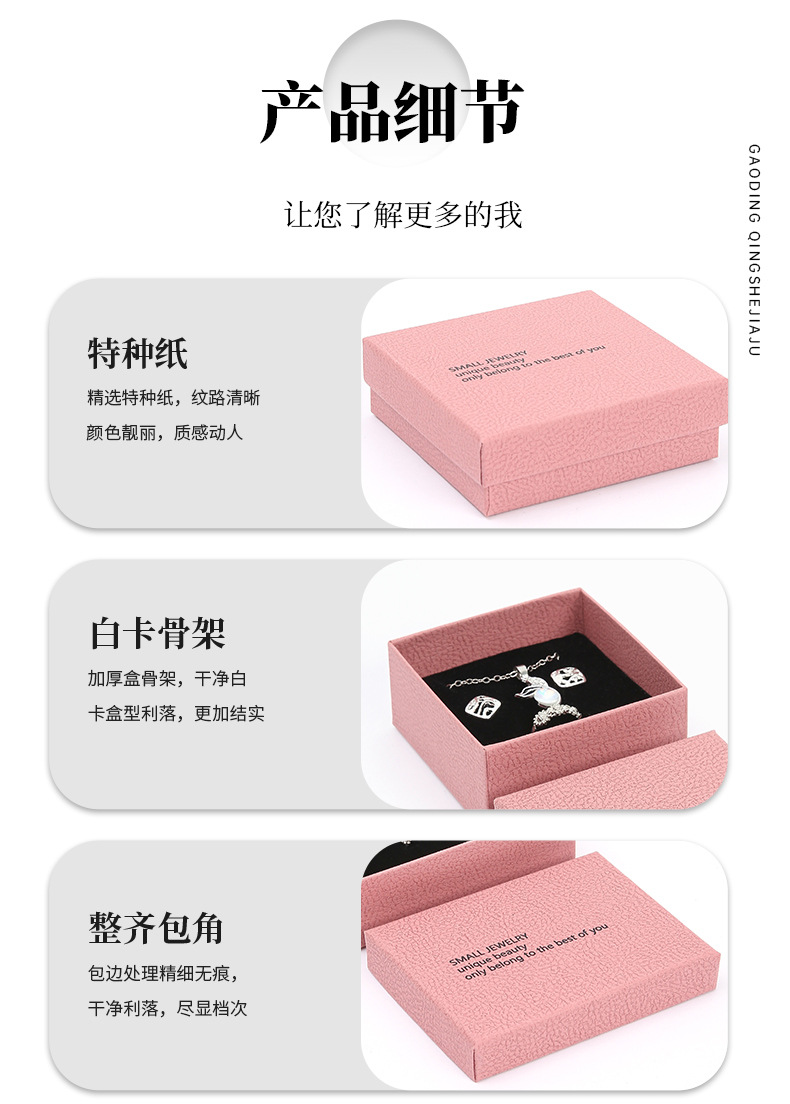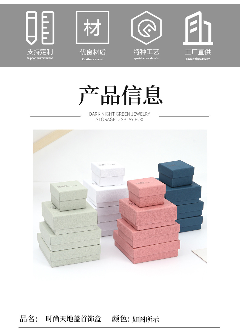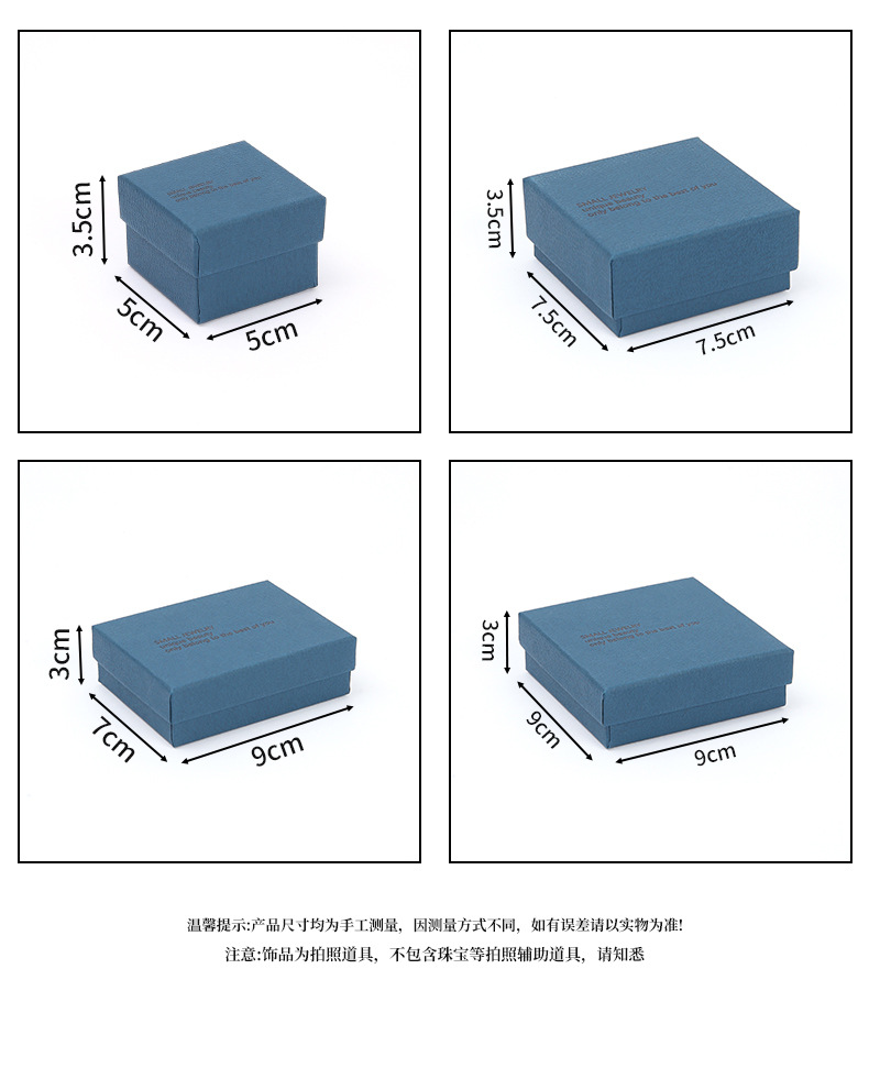 | Especificaciones | Caja de cubierta del cielo y la tierra 5 * 5 * 3,5 cm, bolsa de mano de apoyo: 11 * 12 * 6 cm, caja de cubierta del cielo y la tierra 9 * 9 * 3,5 cm, caja de cubierta del cielo y la tierra 7 * 7,5 * 3,5 cm, caja de cubierta del cielo y la tierra 7 * 9 * 3,5 cm |