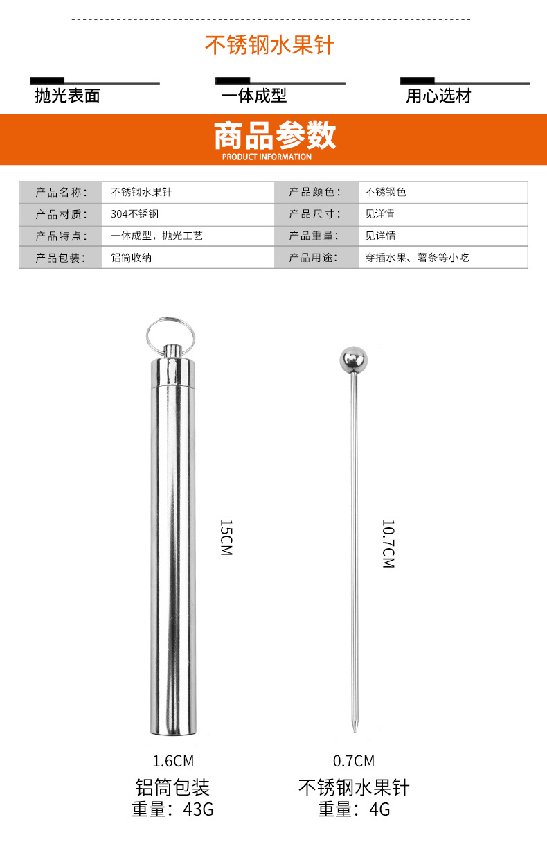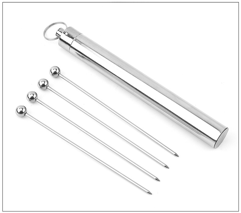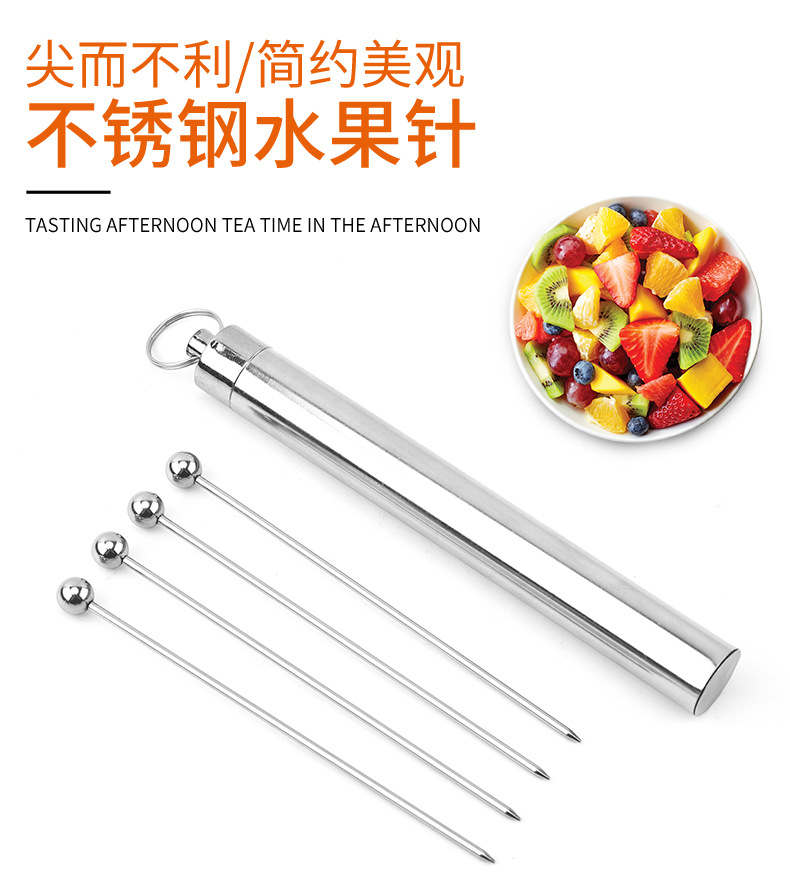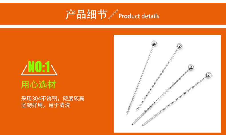 Fábrica al por mayor de acero inoxidable aguja de fruta tenedor de fruta aguja de cóctel firma de pastel firma de bocadillos barra cocina casera