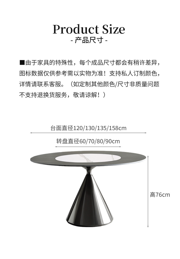 | Tamaño | Mesa de comedor de 0,9 m (Nota de pedido Placa de roca),Mesa de comedor de 1,0 m (Nota de pedido Placa de roca),Mesa de comedor de 1,1 m (Nota de pedido Placa de roca),Mesa de comedor de 1,2 m (Nota de Pedido Placa de roca),Mesa de comedor de 1,3 m (Nota de pedido Placa de roca),Mesa de comedor de 1,35 m (Nota de Pedido Placa de roca),Mesa giratoria externa 0,6/0,7/0,8/metro,Placa giratoria integrada 0,6/0,7/0,8 M |