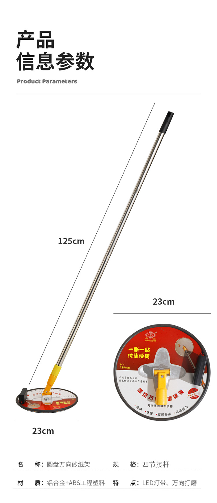 | Ámbito de aplicación | Soporte de arena de disco universal con luz Soporte de arena de iluminación led Soporte de papel de arena autoadhesivo El pulido de la pared se puede alargar |