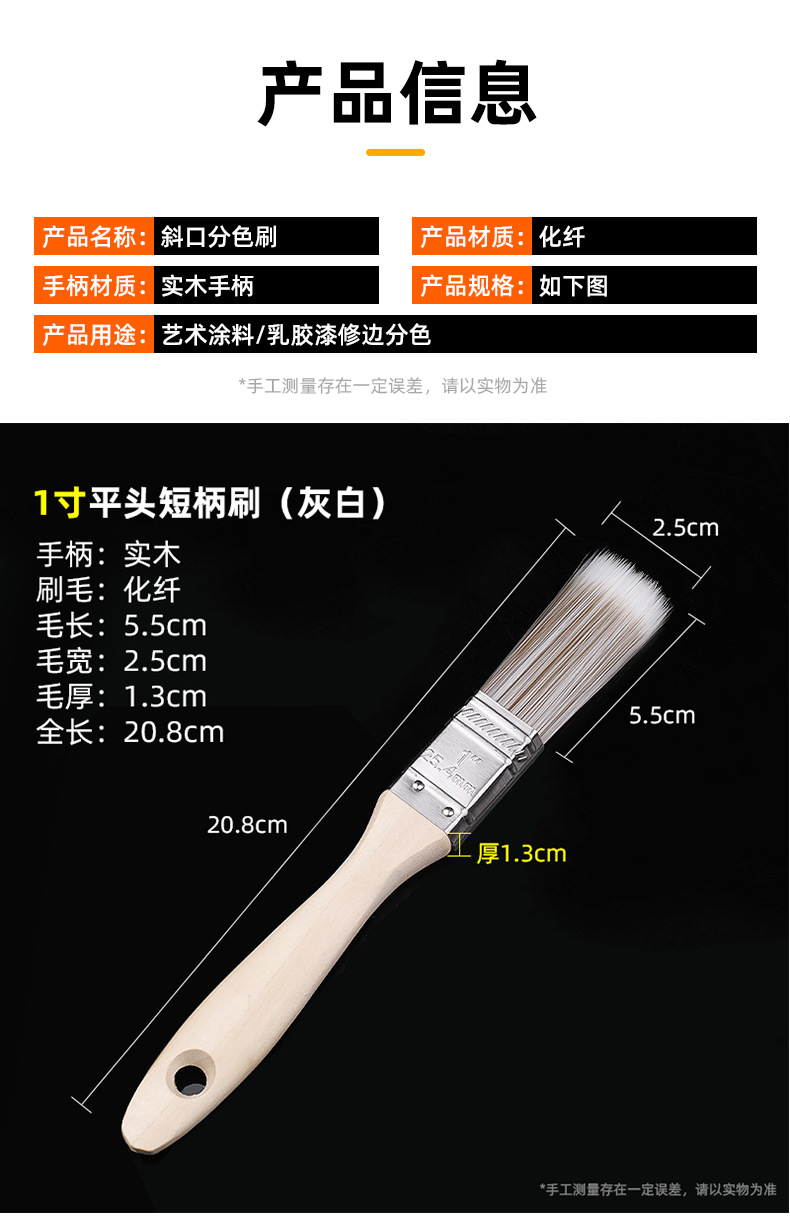 | Colores | Cepillo de mango corto de cabeza plana de 1 pulgada,Cepillo de mango largo biselado de 1,5 pulgadas,Cepillo plano de 2 pulgadas con mango corto,Cepillo de mango largo biselado de 2,5 pulgadas,Cepillo de mango corto biselado de 2 pulgadas,Cepillo de mango largo biselado de 2 pulgadas,Cepillo de mango largo oblicuo de 3 pulgadas |