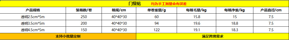 | Modelo de especificación | 2.5cm de ancho * 5m de largo [275 rollos por caja]; transparente,3.5cm de ancho * 5m de largo [200 rollos por caja]; transparente,4.5cm de ancho * 5m de largo [150 rollos por caja]; transparente |