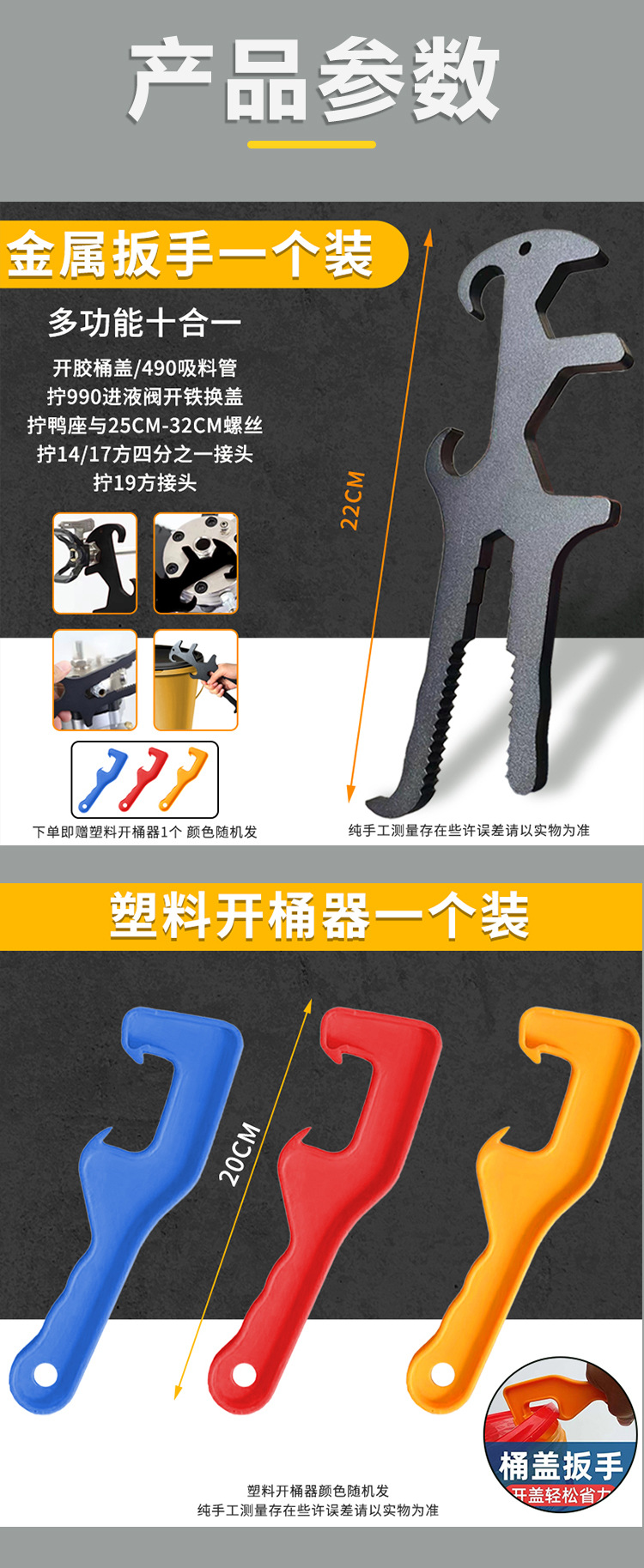 | Ámbito de aplicación | Barril de pintura de látex universal Barril de hierro Apilador de barril universal Máquina de pulverización de llave de metal diez en uno multifuncional Herramienta especial |