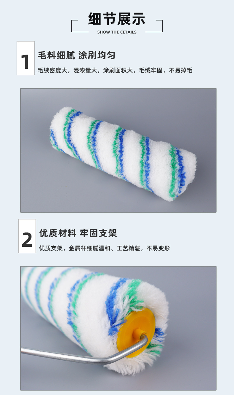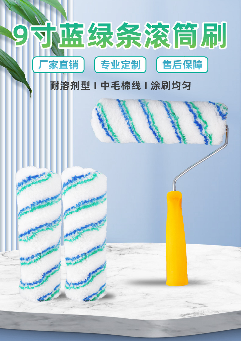 | Especificaciones y modelos | 9 pulgadas de rayas azules y verdes se pueden insertar en el cepillo de tambor (poliéster);; , cepillo de tambor enchufable de rayas amarillas individuales de 9 pulgadas (poliéster);; , cepillo de tambor enchufable a rayas azules individuales de 9 pulgadas (poliéster);; , 9 pulgadas de rayas amarillas dobles se pueden insertar en el cepillo de tambor (hilo de algodón);; , cepillo de tambor enchufable blanco puro de 9 pulgadas (lana de imitación);; , cepillo de tambor enchufable blanco puro de 9 pulgadas (khmer);; , cepillo de tambor blanco de 6 pulgadas;;; |