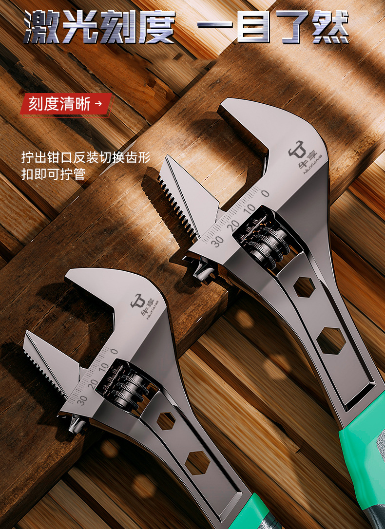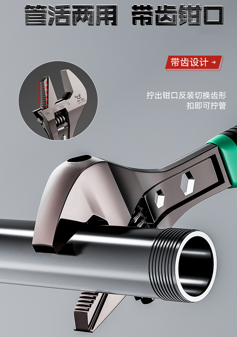 Llave de mano de doble propósito universal con dientes y tubería, llave de mano a prueba de agua a prueba de óxido de grado industrial 0 - 36mm
