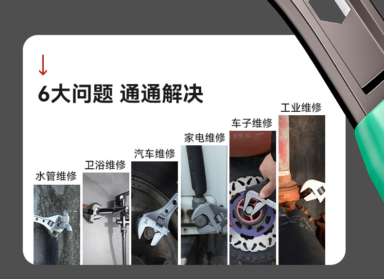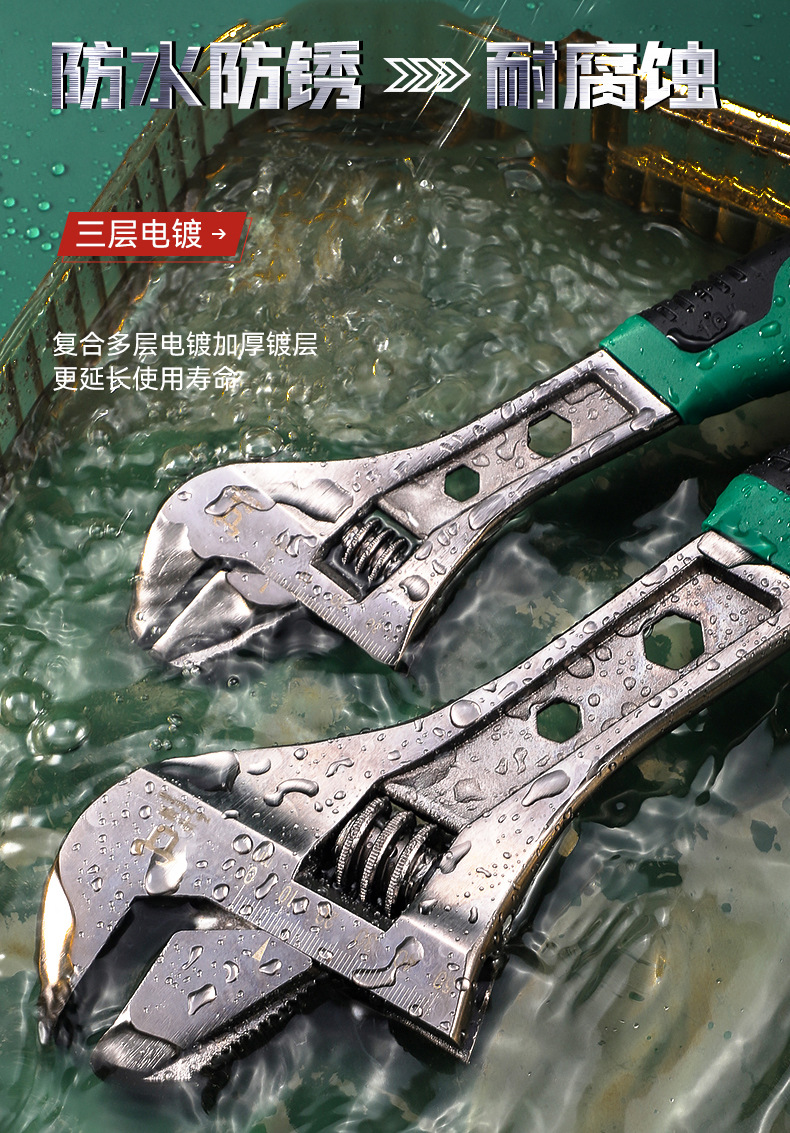 Función de herramienta de llave de baño, mango corto, llave de mantenimiento de apertura grande, llave de tubería de agua, llave móvil