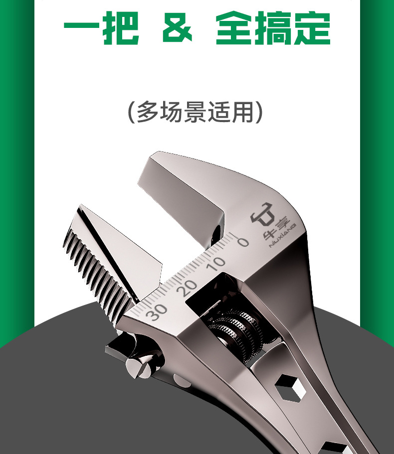 Llave universal de gran apertura de gran angular de alta dureza, grado industrial, multifuncional de mango corto, llave de gran apertura para baño, boca viva