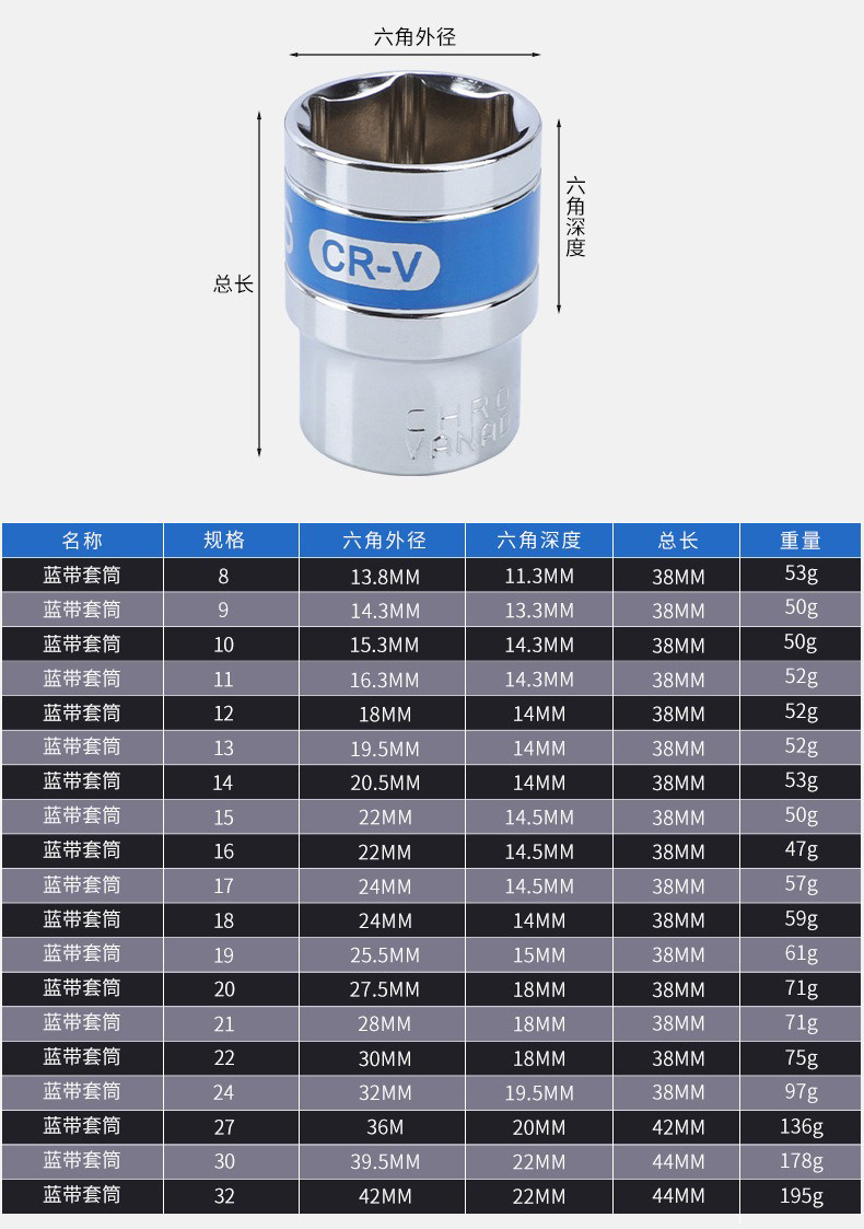 Espejo 8-32mm manga de acero al cromo vanadio venta caliente transfronteriza multifunción multitamaño pistola de viento hexagonal interior manga de cinturón azul