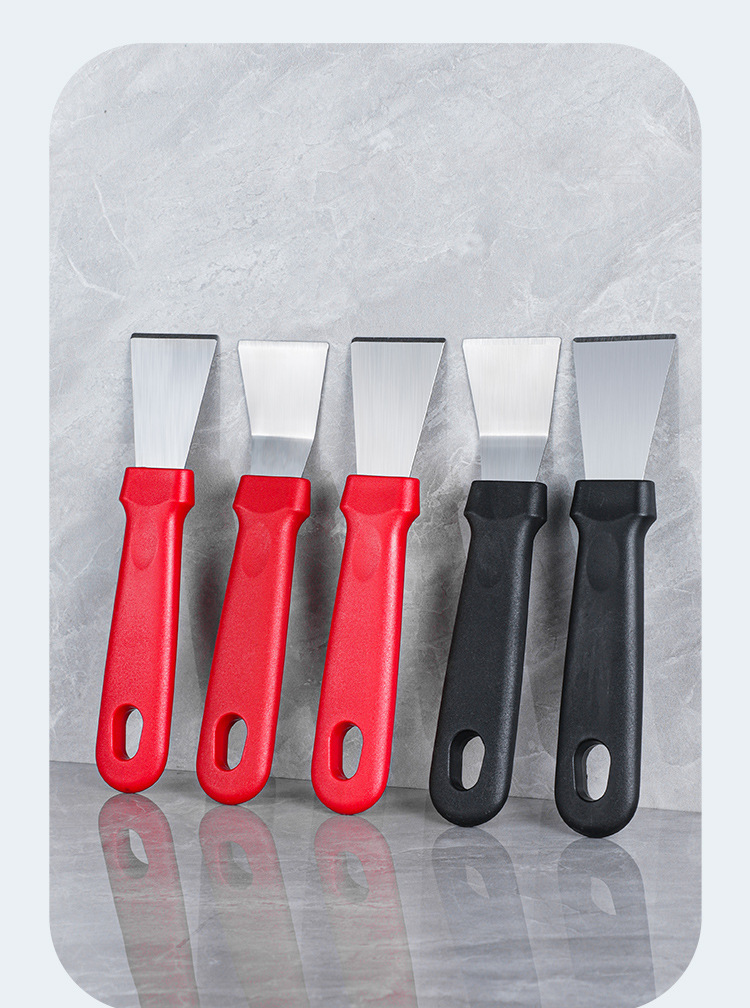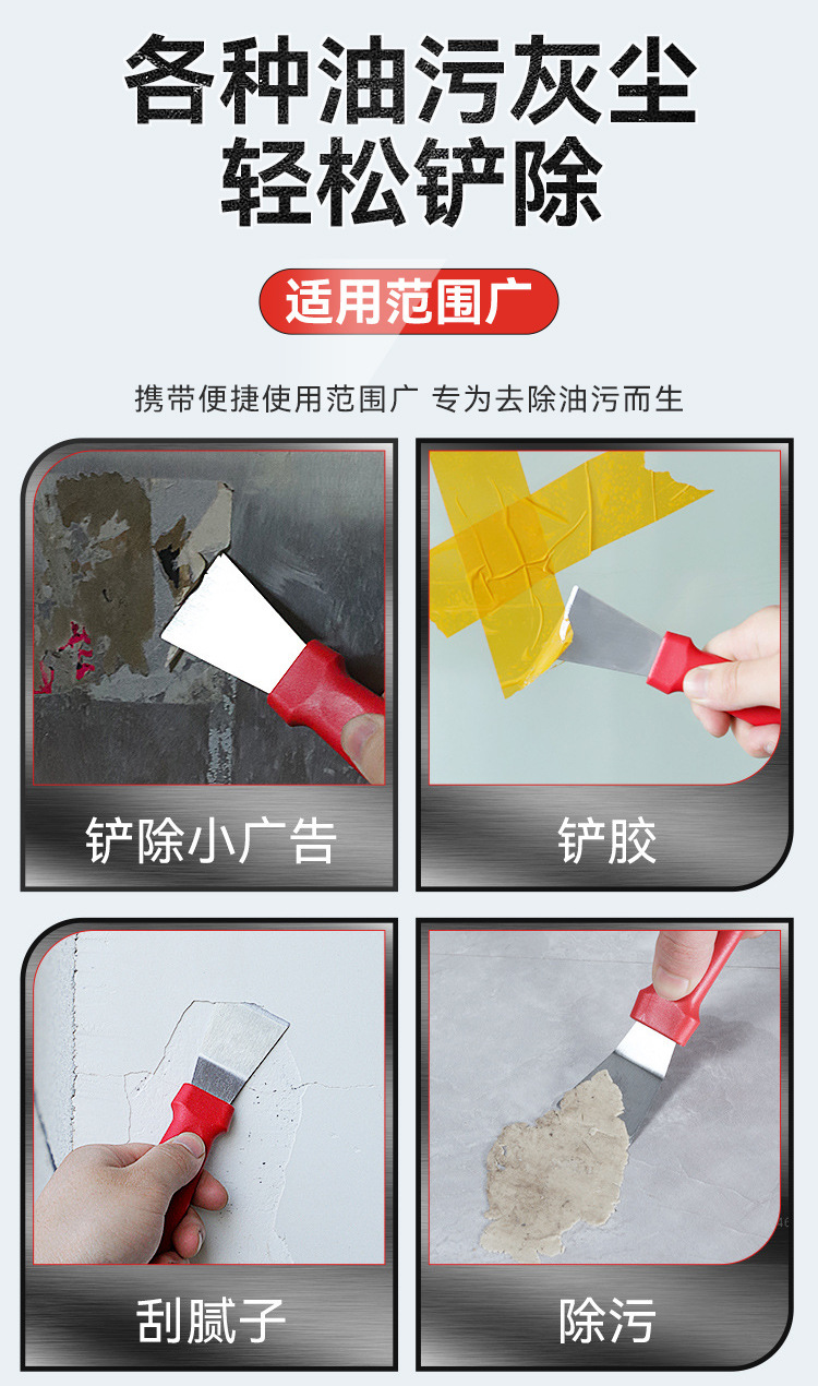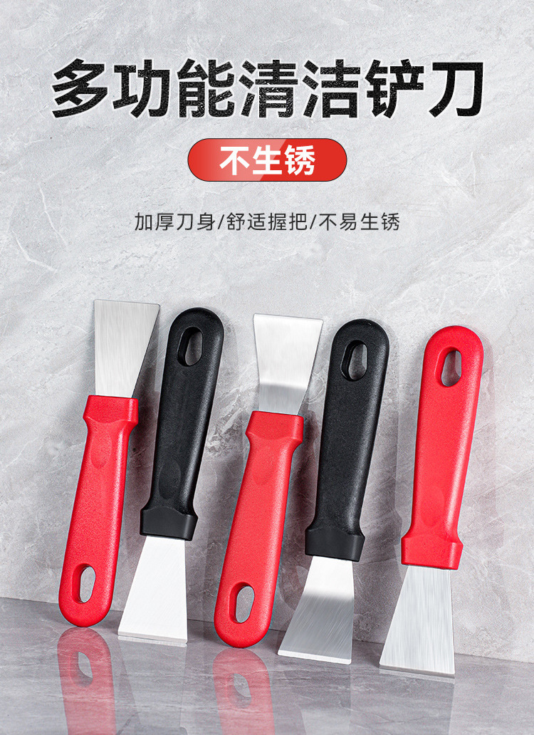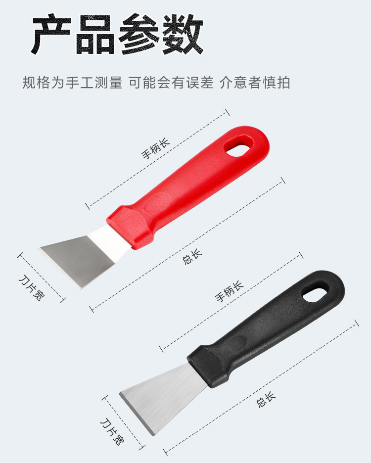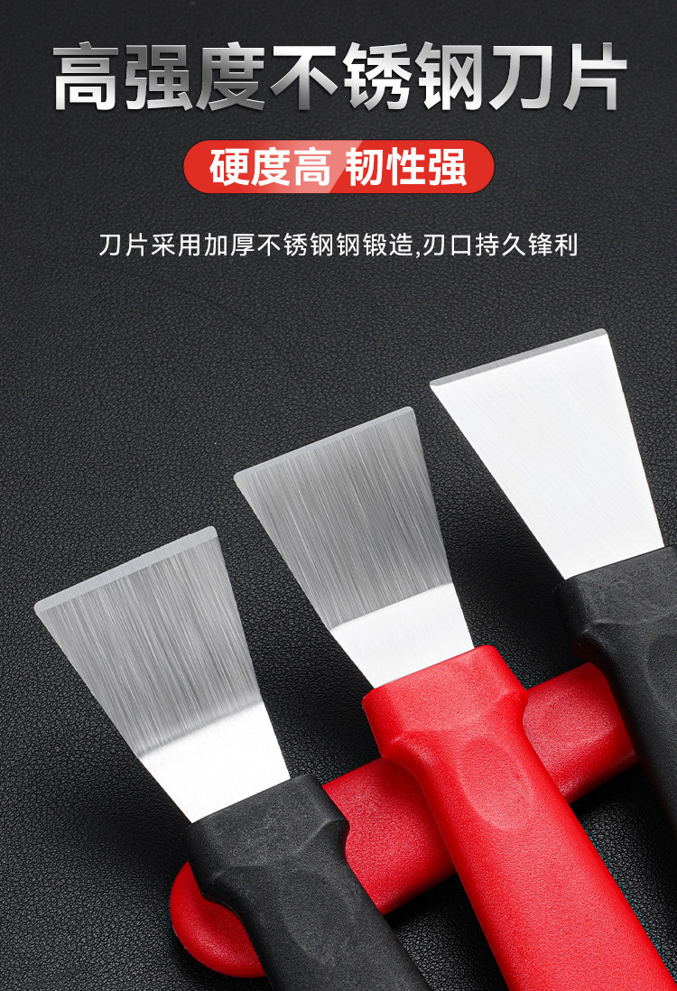 Multi-funcional resistente al desgaste de acero inoxidable hoja de limpieza engrosada mango corto tamaño pequeño piso pared hoja de limpieza de la piel