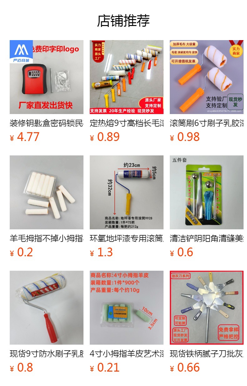 | Especificación | Juego completo de 4 pulgadas para pintar.,Juego completo de 6 pulgadas para pintar.,9 pulgadas termofusible amarillo azul,Blanco puro termofusible de 9 pulgadas sin callejones sin salida,Tira amarilla termofusible de alta gama de 6 pulgadas,Tira amarilla termofusible de alta gama de 4 pulgadas,Pelo largo 9 pulgadas azul y gris.,Tira especial termofusible azul para paredes interiores,Conjunto completo de adhesivo termofusible amarillo y azul "Thumbs up".,Cabeza de tira amarilla termofusible para dedo meñique,Hilo de algodón para dedo meñique termofusible cabeza amarilla y azul,Gama completa de postes telescópicos desmontables y extensibles de 2 metros. |