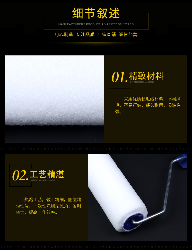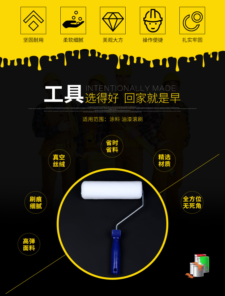 Procesamiento personalizado resistente a los solventes cepillo de cepillo medio de pelo cepillo de rodillo de pelo fino cepillo de rodillo de pintura de 9 pulgadas