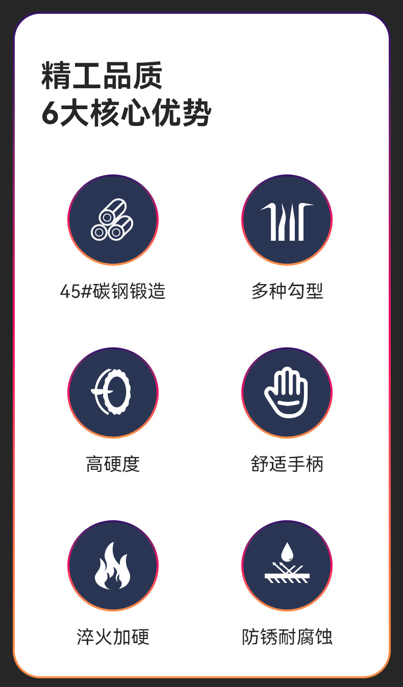 | Especificaciones y modelos | Gancho de prensado [1 paquete], conjunto corto de 4 piezas [bolsa OPP], conjunto corto de 4 piezas [paquete de tarjeta], conjunto largo de 4 piezas [paquete de tarjeta], conjunto largo de 9 piezas [paquete de tarjeta], conjunto corto de 4 piezas [bolsa op] + pala + guante, conjunto corto de 4 piezas [paquete de tarjeta] + pala + guante, conjunto largo de 9 piezas [paquete de tarjeta] + guante |