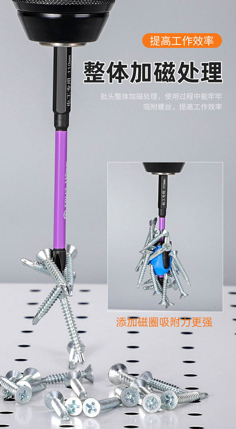 Mango hexagonal cabeza de destornillador antideslizante 12PC anillo de bolsa de cuero azul 50mm destornillador eléctrico combinación traje fuerte magnético Cruz destornillador cabeza