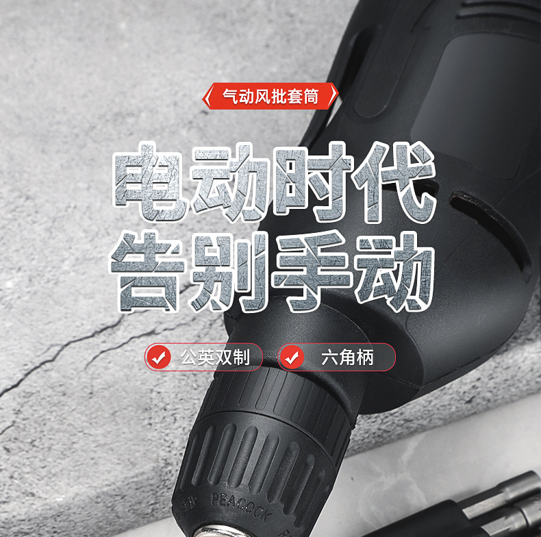 Venta al por mayor 10-piece set 1/2 eléctrica llave hexagonal alargado socket cabeza rack trabajador pequeña pistola de aire gran mosca traje