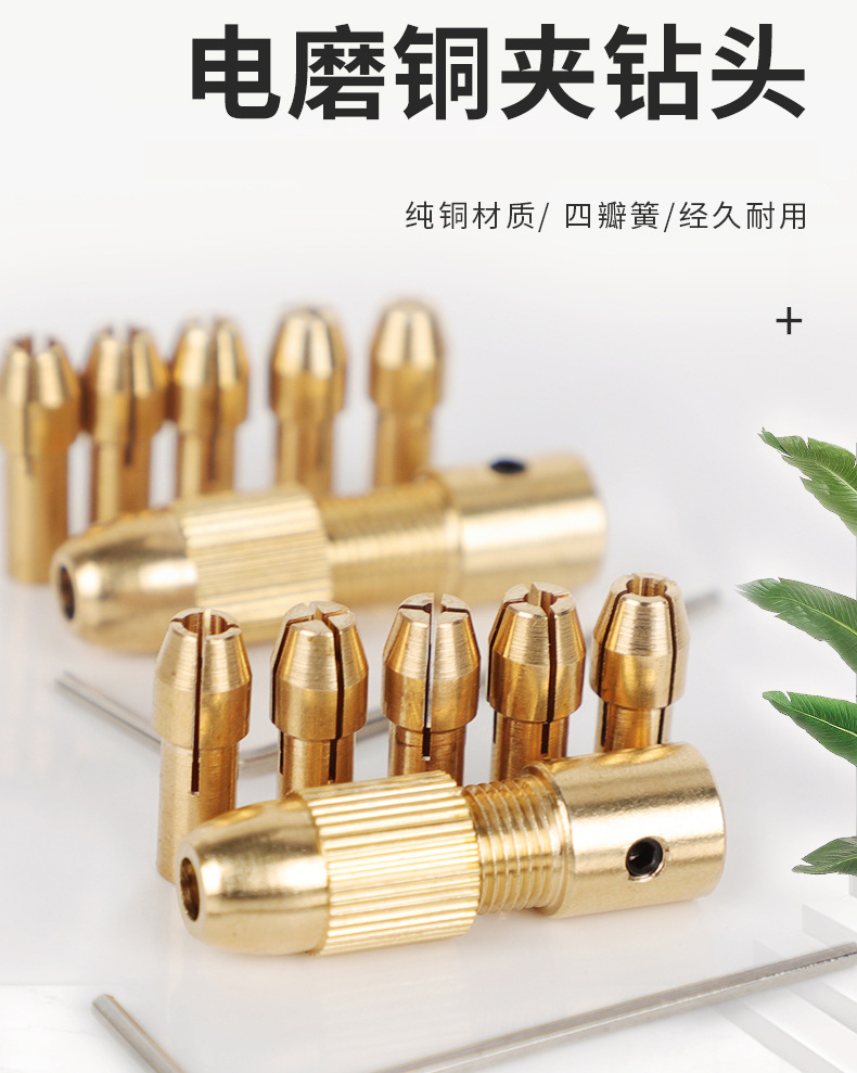Abrazadera de cobre de molino eléctrico pequeño, tapa de bloqueo con núcleo de abrazadera de mini tuerca, eje central de precisión de alta eléctrica, juego de 7 piezas, mandril de cobre de 2,35mm