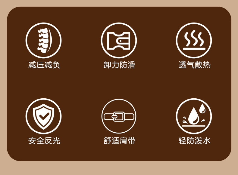 | Función | Transpirable, impermeable, ultraligero, resistente al desgaste, expansión, reducción de carga, almacenamiento, reflejo de seguridad nocturna |