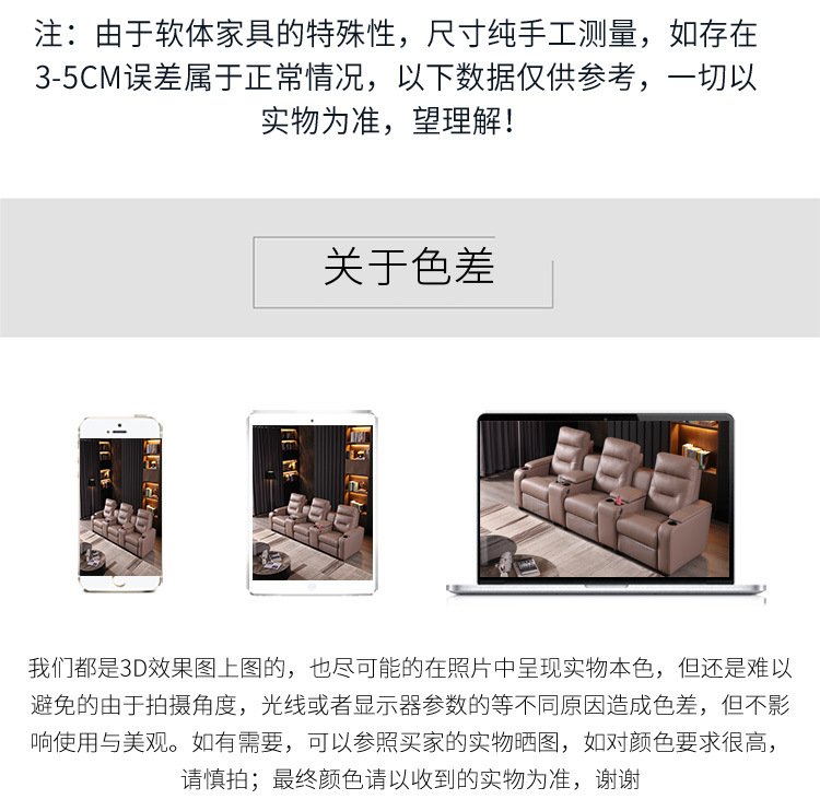 | Modelo de especificación | Asiento individual (92*95*103CM); función eléctrica con USB; material de cuero sintético.,Asiento individual (92*95*103CM); función eléctrica con USB; cuero vacuno ordinario - material,Asiento individual (92*95*103CM); función eléctrica con USB; elegante material de piel de vaca,Asiento doble (190*95*103CM; función eléctrica con USB; material de imitación de cuero,Asiento doble (190*95*103CM; función eléctrica con USB; cuero vacuno estándar - material),Asiento doble (190*95*103CM; función eléctrica con USB; material de piel de vaca elegante,Sofá de tres plazas (280*95*103CM; Reclinable eléctrico con puerto USB; Material de piel sintética),Sofá de tres plazas (280*95*103CM; Función reclinable eléctrica con puerto USB; Material de cuero vacuno estándar),Sofá de tres plazas (280*95*103CM; Función reclinable eléctrica con puertos USB; Material de cuero de primera calidad).,Sofá de cuatro plazas (350*95*103) CM; Función reclinable eléctrica con puerto USB; Material de piel sintética.,Sofá de cuatro plazas (350*95*103) CM; Función reclinable eléctrica con puerto USB; Material de cuero de vaca estándar.,Sofá de cuatro plazas (350*95*103) CM; Función reclinable eléctrica con puertos USB; Material de cuero de primera calidad. |