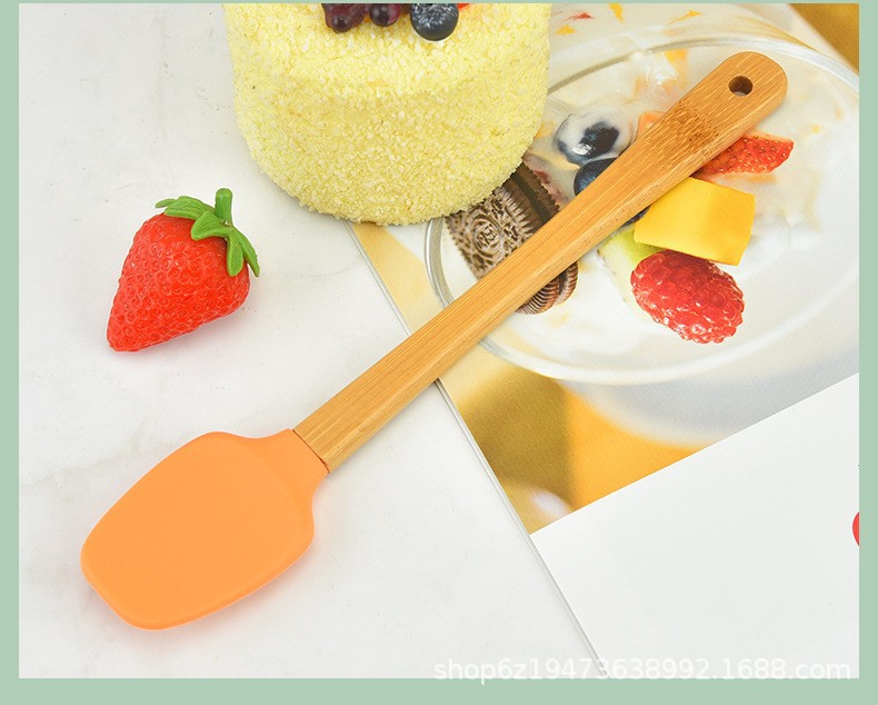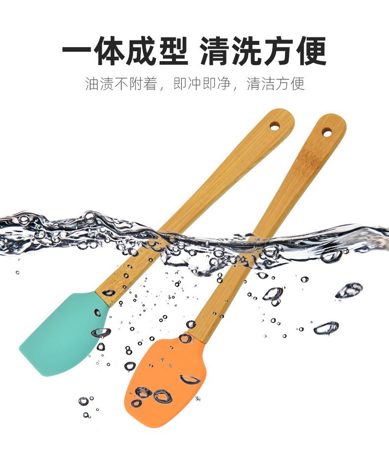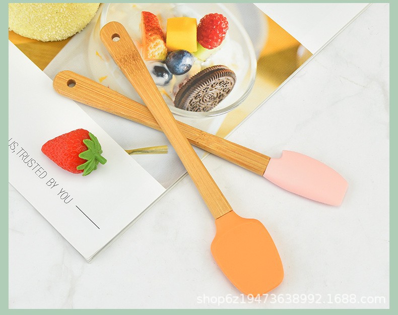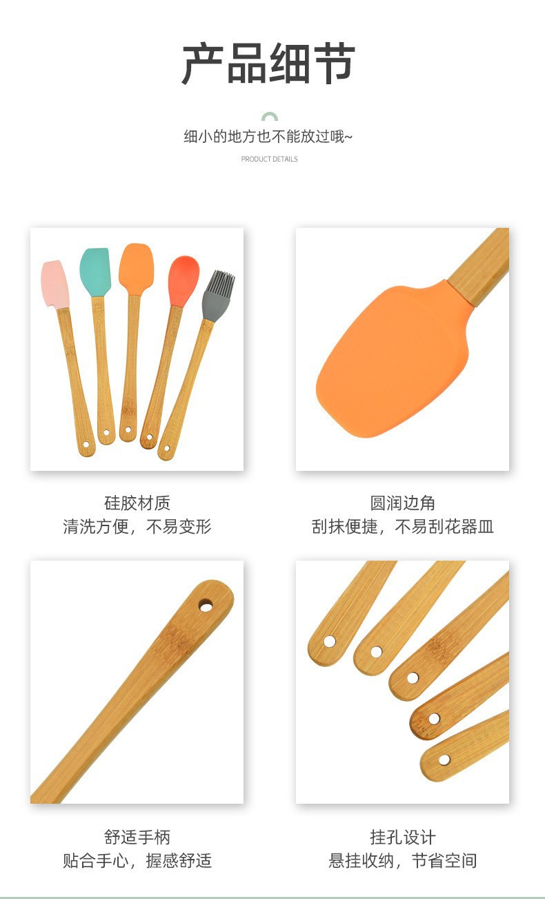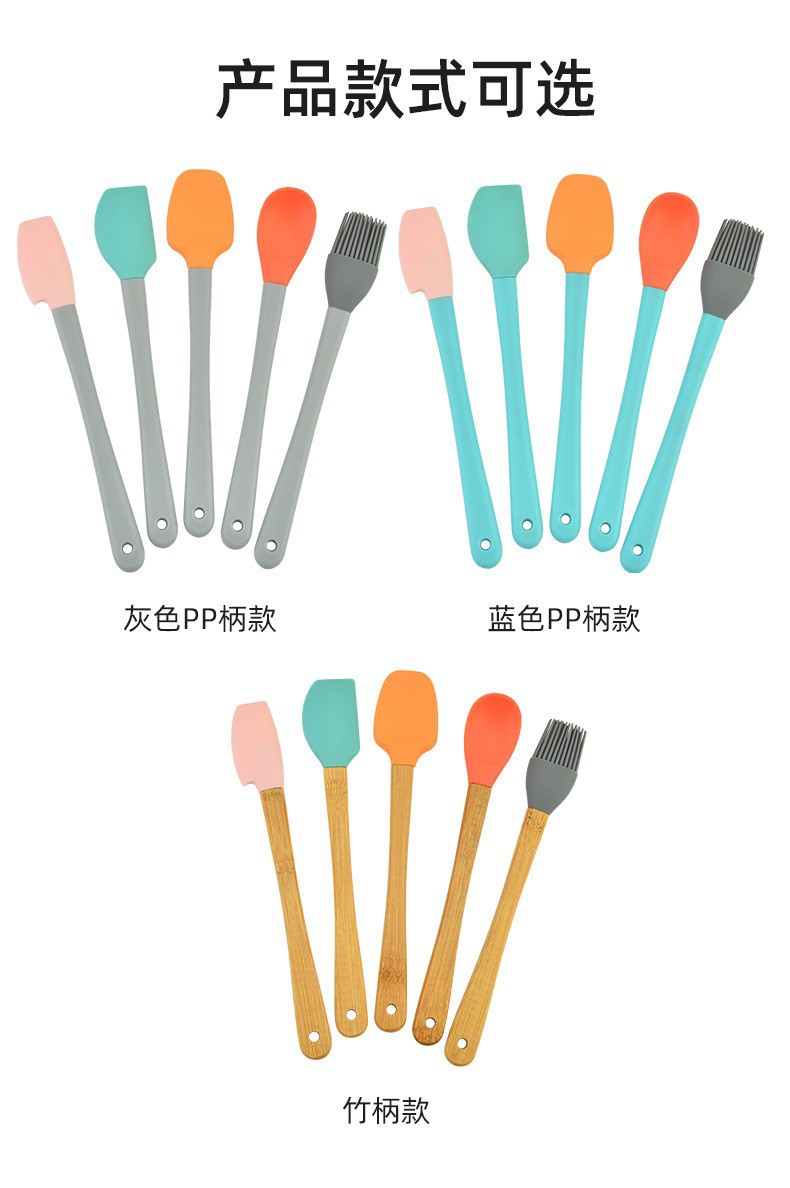 Mini raspador de cinco piezas Cuchara de silicona Cepillo de aceite Juego de utensilios de cocina Mango de madera Raspador de silicona de color Herramientas para hornear de cocina