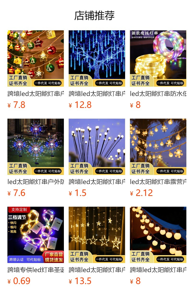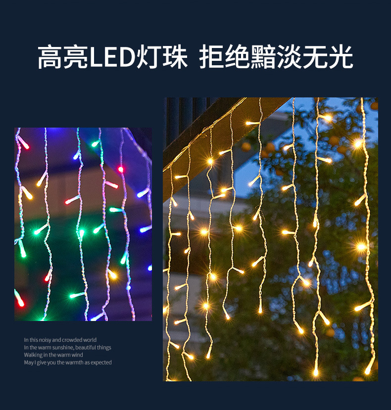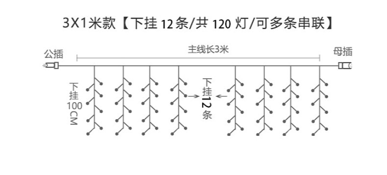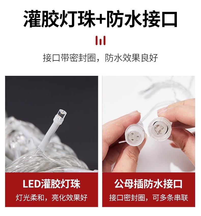 | Potencia | 10*0.3米 120灯(齐平40挂)(不含插头 插头另拍)-220V,10*0.4米 160灯(齐平40挂)(不含插头 插头另拍)--220V,10*0.5米 200灯(齐平40挂)(不含插头 插头另拍)-220V,10*0.6米 200灯(齐平40挂)(不含插头 插头另拍)-220V,10*0.8米 280灯(齐平40挂)(不含插头 插头另拍)-220V,10*1米 320灯(齐平40挂)(不含插头 插头另拍)-220V,5*1米 192灯(齐平24挂)(不含插头 插头另拍)-220V,5*0.3米 72灯(齐平24挂)(不含插头 插头另拍)-220V,5*0.4米 96灯(齐平24挂)(不含插头 插头另拍)-220V,5*0.6米 120灯(齐平24挂)(不含插头 插头另拍)-220V,5*0.8米 168灯(齐平24挂)(不含插头 插头另拍)-220V,4*0.3米 72灯(齐平24挂)(不含插头 插头另拍)-220V,4*0.6米 144灯(齐平24挂)(不含插头 插头另拍)-220V,4*0.6米 120灯(齐平20挂)(不含插头 插头另拍)-220V,3*1米 144灯(齐平18挂)(不含插头 插头另拍)-220V,3*1.5米 180灯(齐平12挂)(不含插头 插头另拍)-220V,3*2米 200灯(齐平10挂)(不含插头 插头另拍)-220V,3*3米 304灯(齐平16挂)(不含插头 插头另拍)-220V,3*3米 300灯(齐平12挂)带欧规插头和尾插-220V,3.5*0.5米 96灯(波浪24挂)(不含插头 插头另拍)-220V,6*0.5米 150灯(齐平30挂)(不含插头 插头另拍)-220V,5*0.7米 216灯(波浪36挂)(不含插头 插头另拍)-220V,3.5*0.5米 96灯 带欧规插头和尾插-220V,常亮防水插头(室内外可用)—220V扁插美规,八功能记忆插头不防水(室内使用)—220V扁插美规,常亮防水插头(室内外可用)—220V圆插欧规,八功能记忆插头不防水(室内使用)—220V圆插欧规,八功能插头带遥控不防水--220V圆插欧规,八功能插头带遥控不防水--220V扁插美规,24V低压 10*0.3米 120灯(齐平40挂)(不含插头 插头另拍),24V低压10*0.4米 160灯(齐平40挂)(不含插头 插头另拍),24V低压 10*0.5米 200灯(齐平40挂)(不含插头 插头另拍),24V 低压10*0.6米 200灯(齐平40挂)(不含插头 插头另拍),24V 低压 10*0.8米 280灯(齐平40挂)(不含插头 插头另拍),24V低压 4*0.3米 72灯(齐平24挂)(不含插头 插头另拍),24V低压 5*0.8米 168灯(齐平24挂)(不含插头 插头另拍),24V低压 3.5*0.5米 96灯(齐平24挂)(不含插头 插头另拍),24V低压 3*1米 128灯(齐平16挂)(不含插头 插头另拍),24V低压 3*1米 160灯(齐平16挂)(不含插头 插头另拍),24V低压 4*0.6米 120灯(齐平20挂)(不含插头 插头另拍),24V低压 5*0.7米 216灯(波浪36挂)(不含插头 插头另拍),24V低压 3*3米 304灯(齐平16挂)(不含插头 插头另拍),24V低压常亮防水插头美规扁插(110V-220V通用),24V低压8模式防水插头美规扁插(110V-220V通用),24V低压8模式防水插头欧规圆插(110V-220V通用),24V低压太阳能1200毫安带遥控+USB充电,3米公母插延长线(可连接插头,太阳能板使用),七彩幻变 4*0.4米 80灯(不带电源 电源另拍),七彩同步变色电源带遥控器(220V 下单备注美规或欧规插头)一个电源可带1000灯 |