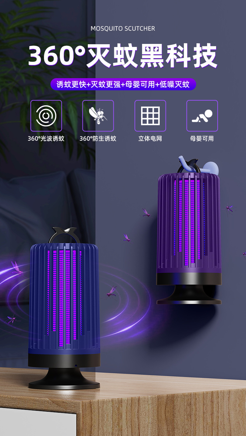 Lámpara asesina de mosquitos, trampa doméstica, inducción física interior, tecnología negra, sala silenciosa, artefacto repelente de mosquitos en el dormitorio