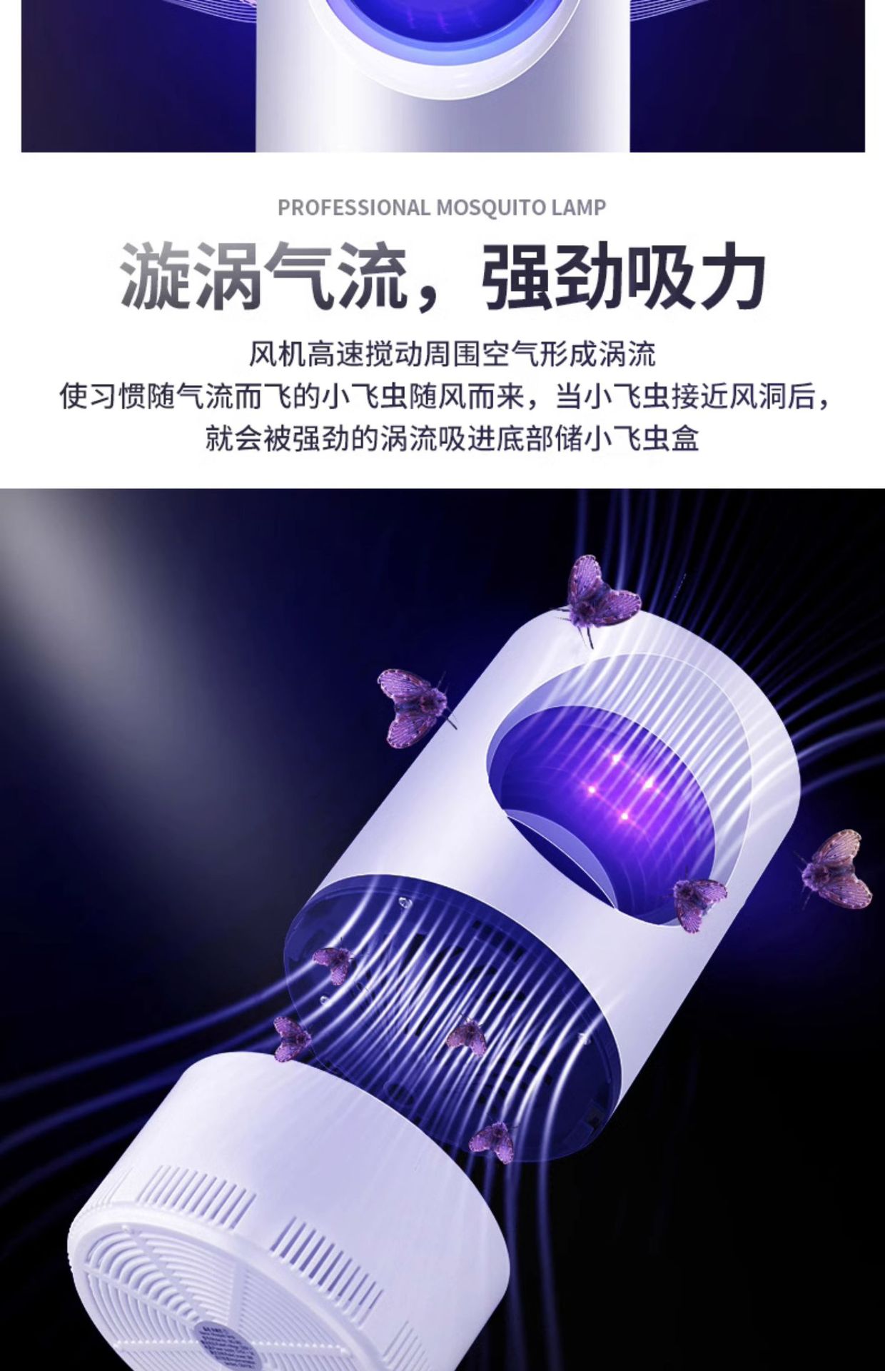 Lámpara asesina de mosquitos, física inteligente para el hogar, artefacto para matar mosquitos, atrapar moscas, dormitorio de bebés, enchufar, chupar, atrapar mosquitos, gran succión