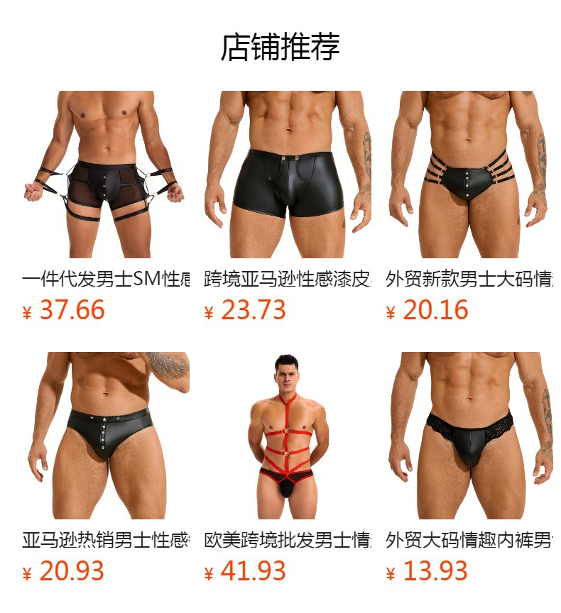 【产品包含】:男士性感pu皮三角裤