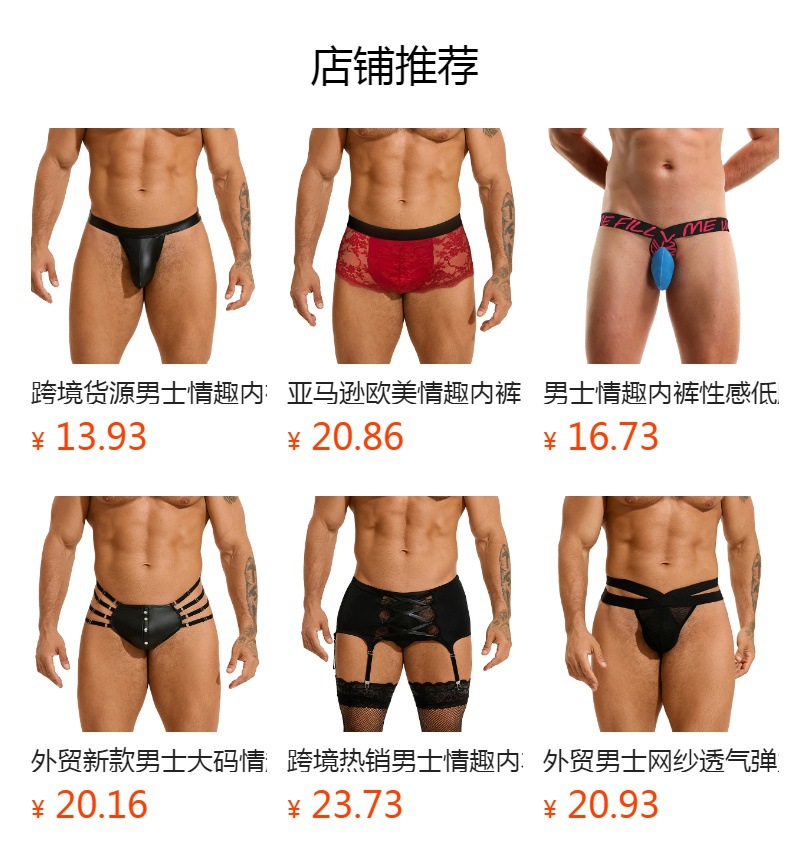 【产品包含】:男士性感PU皮拼接蕾丝三角裤