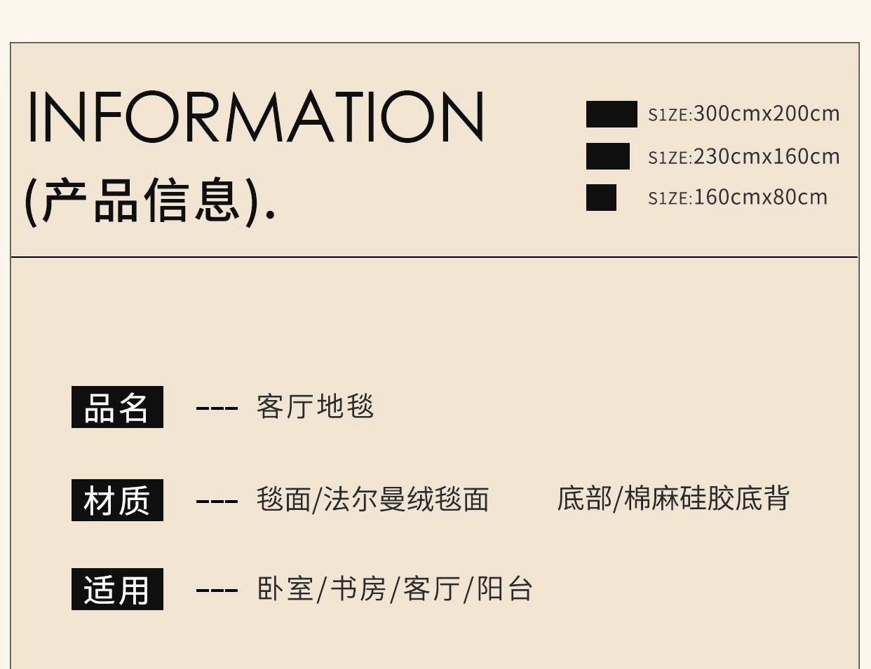 | Tamaño | Diámetro 80 cm, encanto medieval, diámetro 100 cm, sensación cómoda de los pies, diámetro 120cm, aislamiento acústico y reducción de ruido, diámetro 140cm, seguridad antideslizante, diámetro 160cm, textura avanzada, diámetro 180cm, con todas las combinaciones, diámetro 200cm, resistencia a la suciedad y al desgaste, diámetro 240cm, colección y compra, diámetro 300cm, tamaño grande, contacto personalizado con el servicio al cliente |