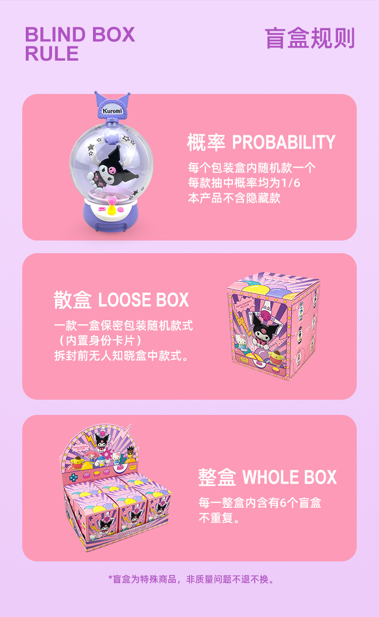 | Color | Una caja grande de la serie Sanrio (incluidas las 6 cajas pequeñas sin repetición), una caja grande de la serie de dibujos animados lindos (incluidas las 6 cajas pequeñas sin repetición), una caja pequeña aleatoria de la serie Sanrio (las cajas ciegas no se devuelven), una caja pequeña aleatoria de la serie de dibujos animados lindos (las cajas ciegas no se devuelven), una caja pequeña aleatoria de la serie de dibujos animados lindos (las cajas ciegas no se devuelven) |
