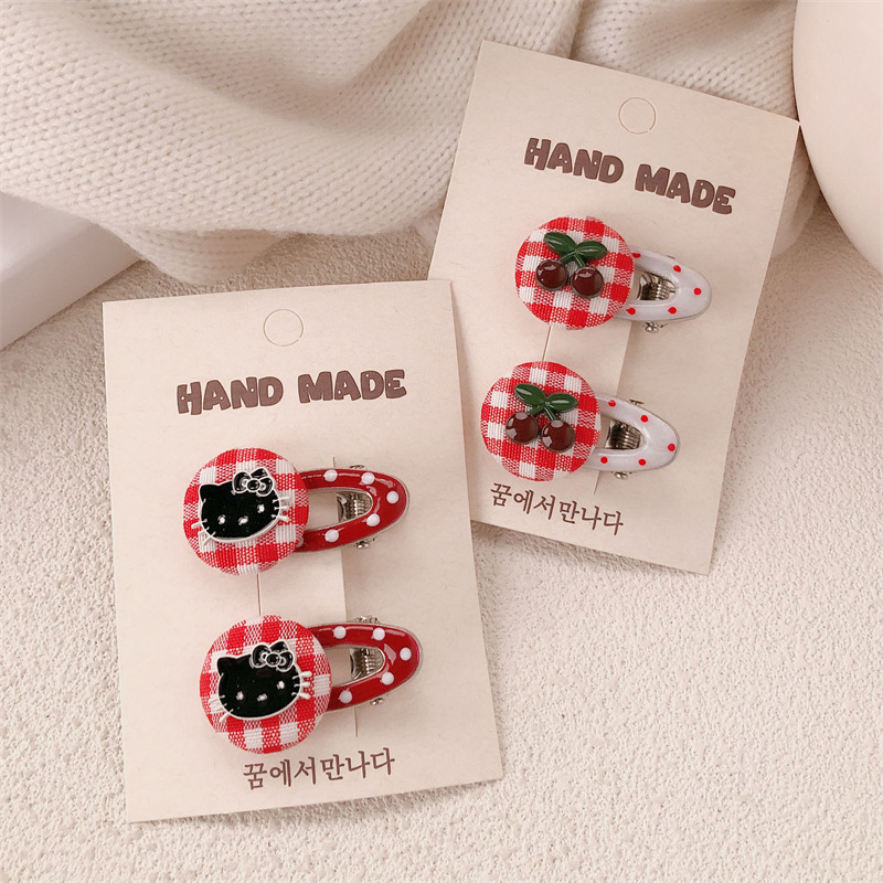 | Colores | Horquilla de gatito a cuadros rojos D5957,Horquilla de gatito a cuadros rosa D5958,Horquilla de gatito a cuadros azul vaquero D5959,Horquilla de cereza a cuadros rojos D5960 |